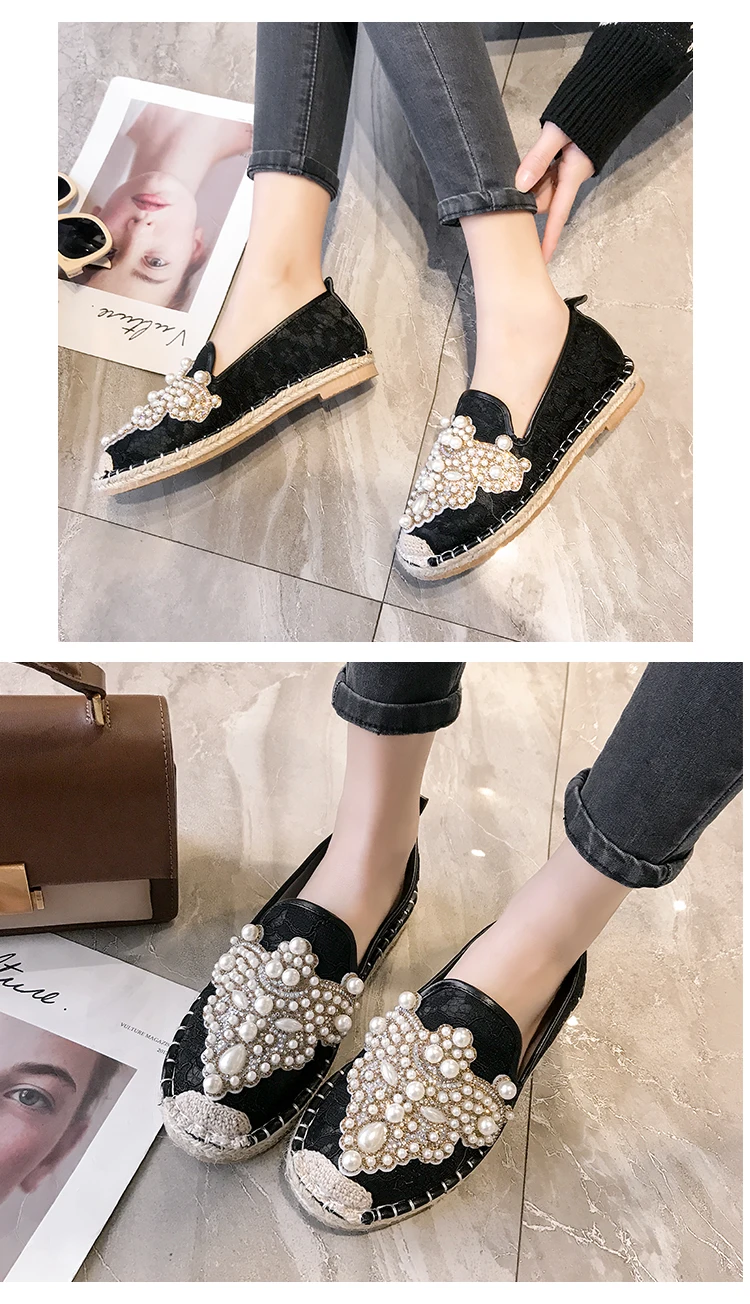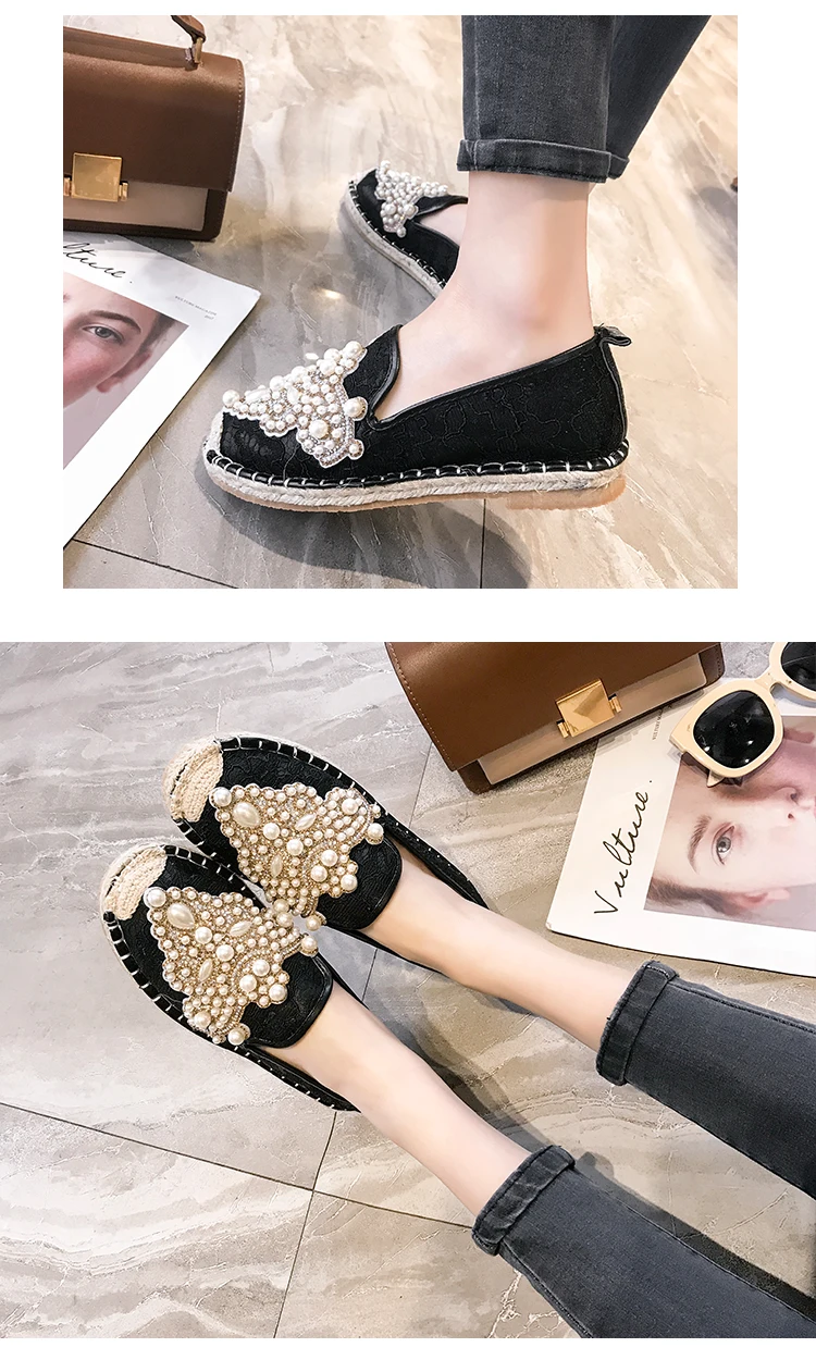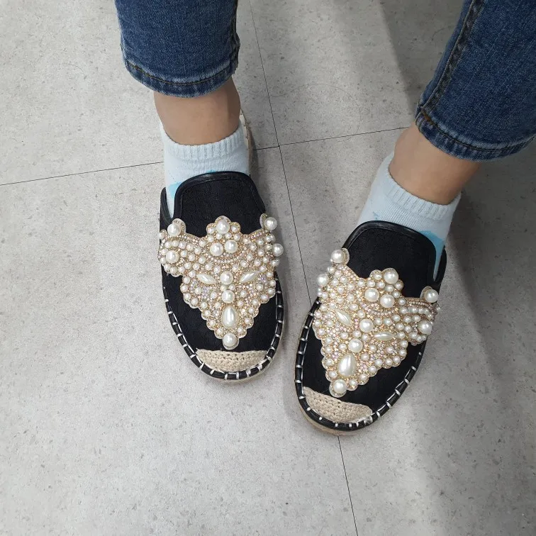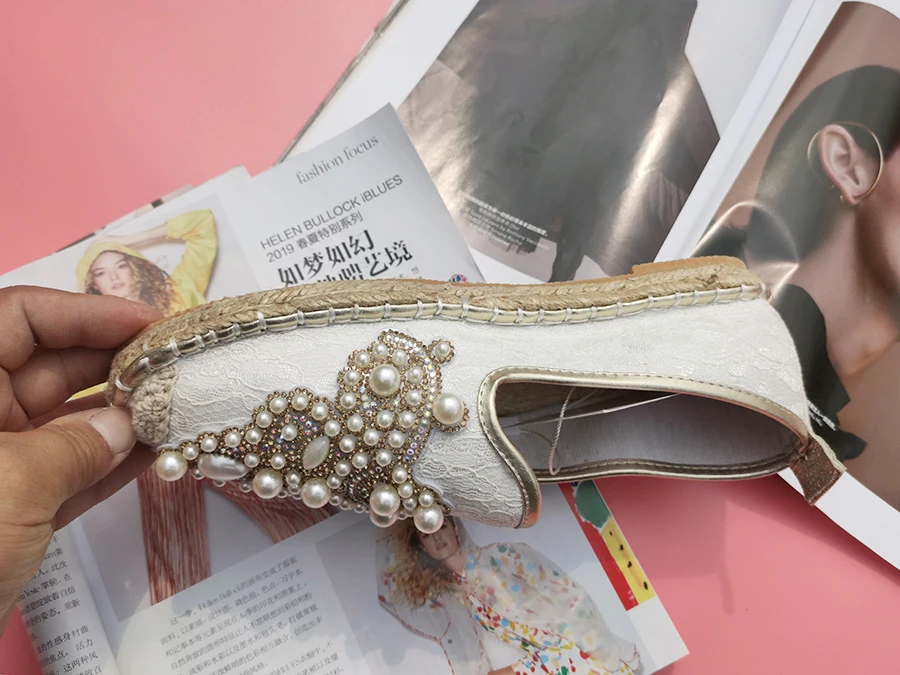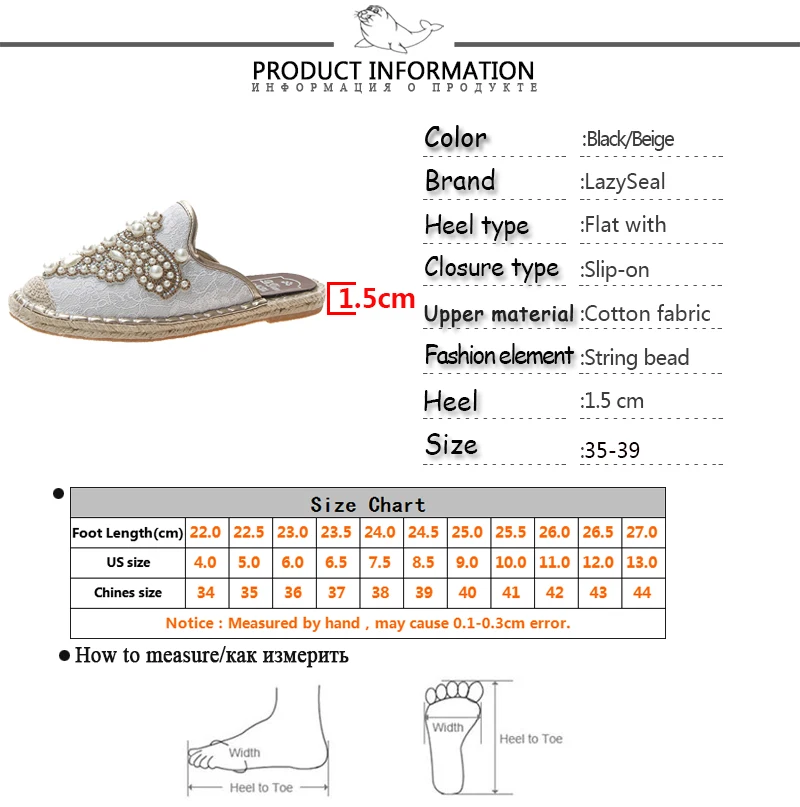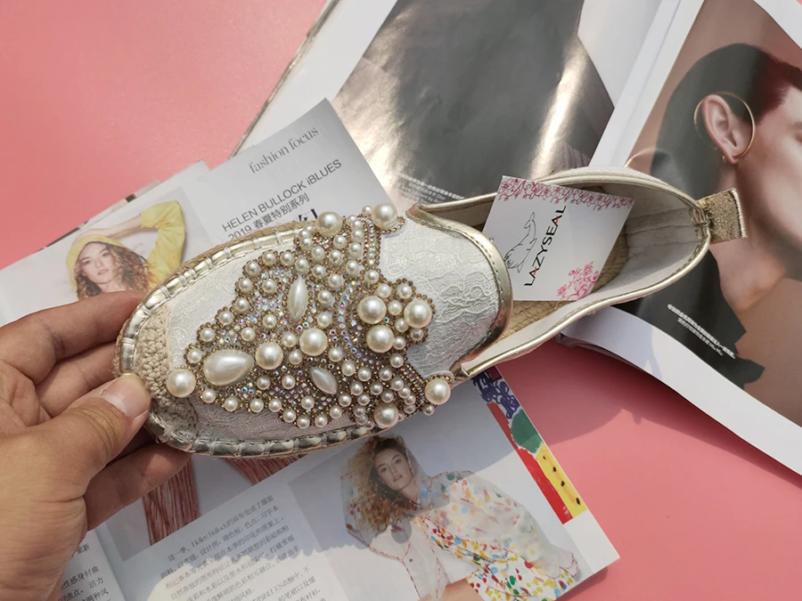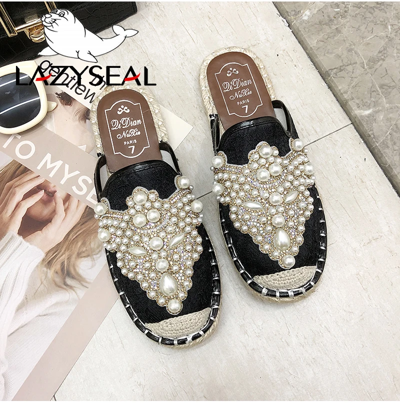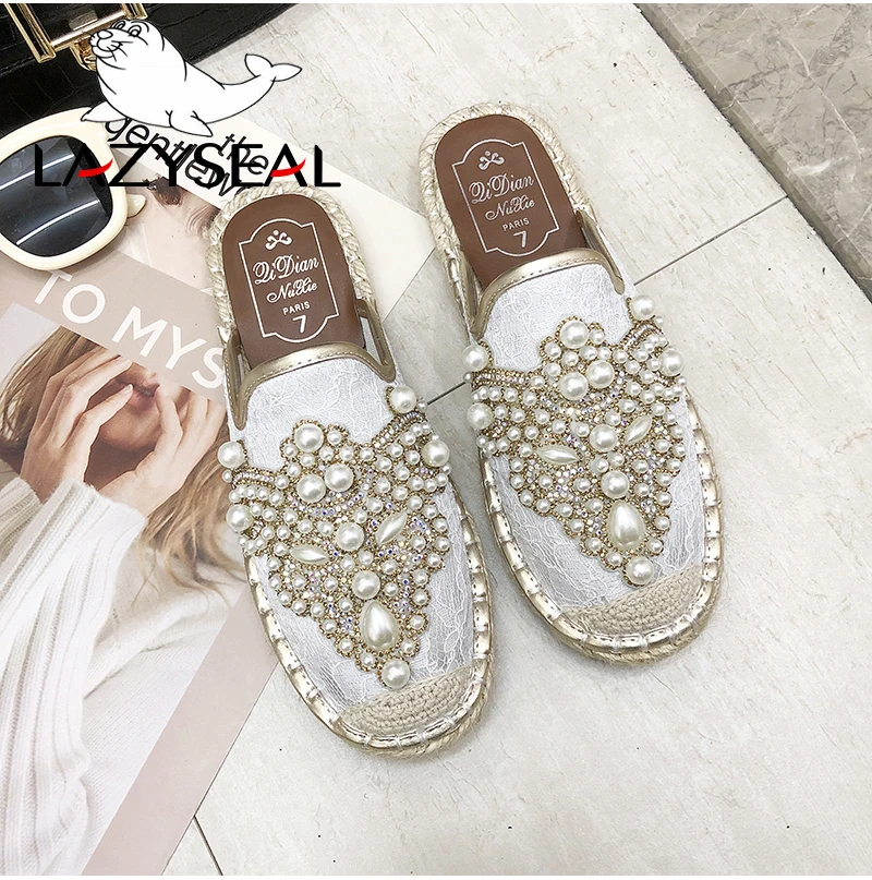 Женские шлепанцы LazySeal, весенние шлепанцы на плоской подошве из конопли, с жемчугом, из хлопчатобумажной ткани