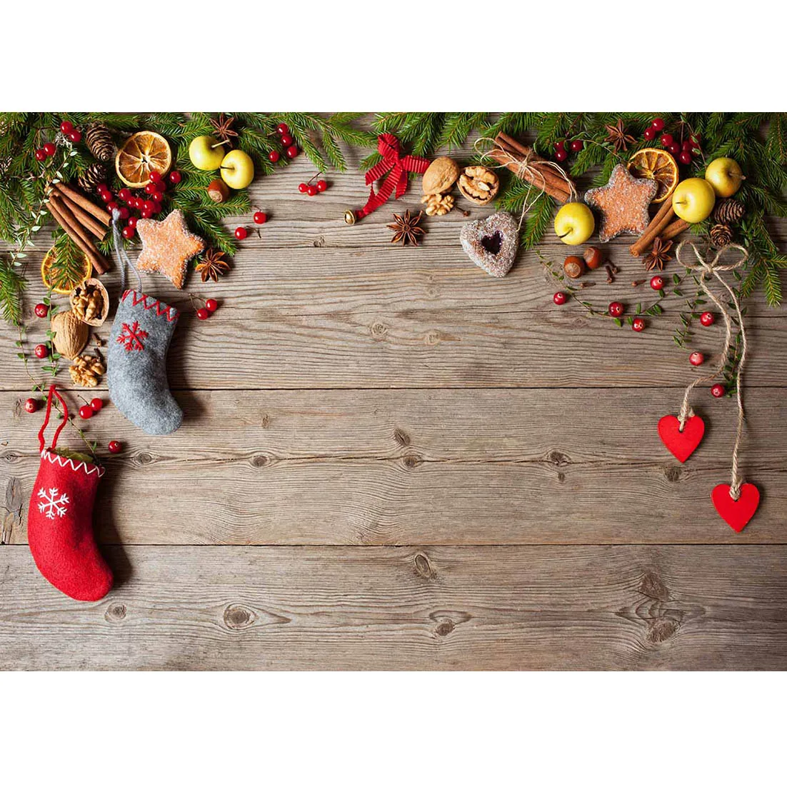 StyleChristmas Socks Nuts Wooden Board Photography Backdrops