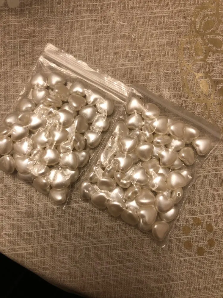 Обычно мне не нравятся аксессуары для сердца, но эта вещь восхитительная. Отлично сочетается с красным, синим, белым. Отверстия довольно большие, поэтому при завязывании банта убедитесь, что у них есть бусины. Достаточно, чтобы мне не пришлось считать, но использовать все, что я хочу. Белые бусы и этот кулон в виде сердца просто потрясающий. Я сделал подходящие для моего парня. Спасибо продавцу, очень потрясающе. Я обязательно куплю у вас снова: Быстрая доставка и очень доступная цена. Я не общался, но мне все равно, с тех пор как получил продукт в любом случае.
