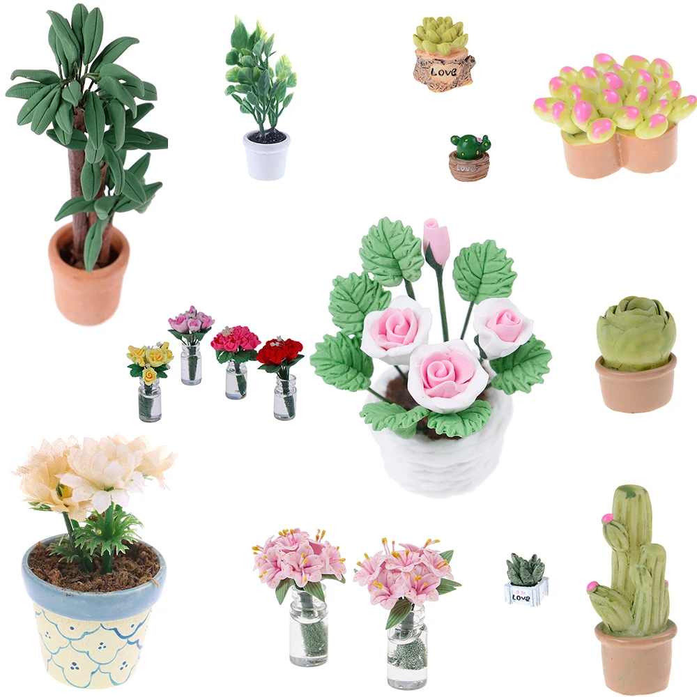 Новое моделирование горшечных растений, зеленое дерево в горшке, зеленое растение в горшке, кукольный домик, мебель, домашний декор для 1:12, миниатюрный кукольный домик