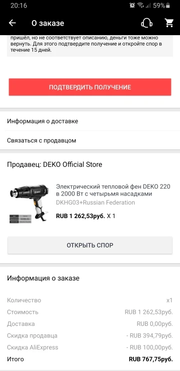 Заказывал по России. Посылка пришла через восемь дней после оформления заказа. При получении на почте смутило , что в коробке что-то дребезжало. Думал фен пришел по частям) А н-нет, оказалось это брякали насадки. При первом включении фен слегка начал дымить, и это нормально, так как от температуры выгорают мелкие частицы, находящиеся в сопле. У фена два режима накаливания, переключаются плавно. Сам выглядит неплохо, конечно вид не сравнить с дорогими моделями конкурентов, но в целом норм. А так лёгкий, удобно лежит в руке. Единственный минус - нет кейса, но за такую цену это вполне объяснимо. Пока всем доволен, посмотрим как покажет себя в работе в дальнейшем. Продавца рекомендую!