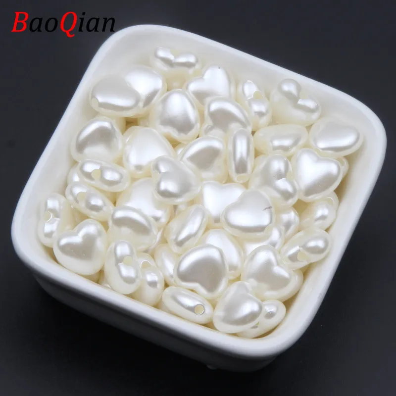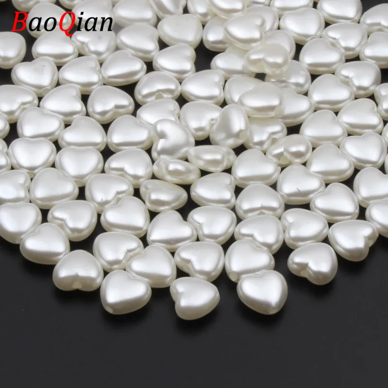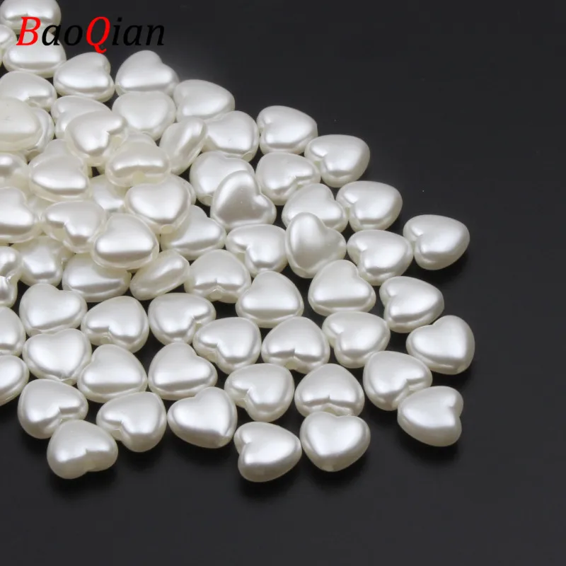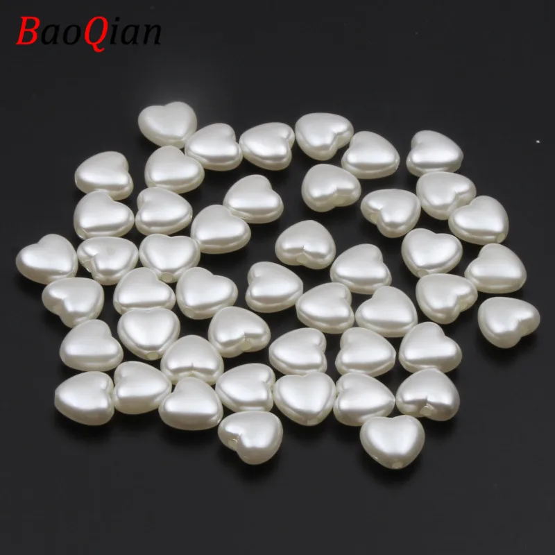 Бусины акриловые в форме сердца для рукоделия, имитация жемчуга, стиль изготовления ожерелий, браслетов, ювелирных изделий, 10x11 мм, 50 шт.