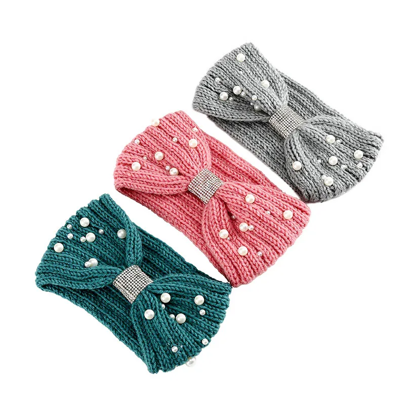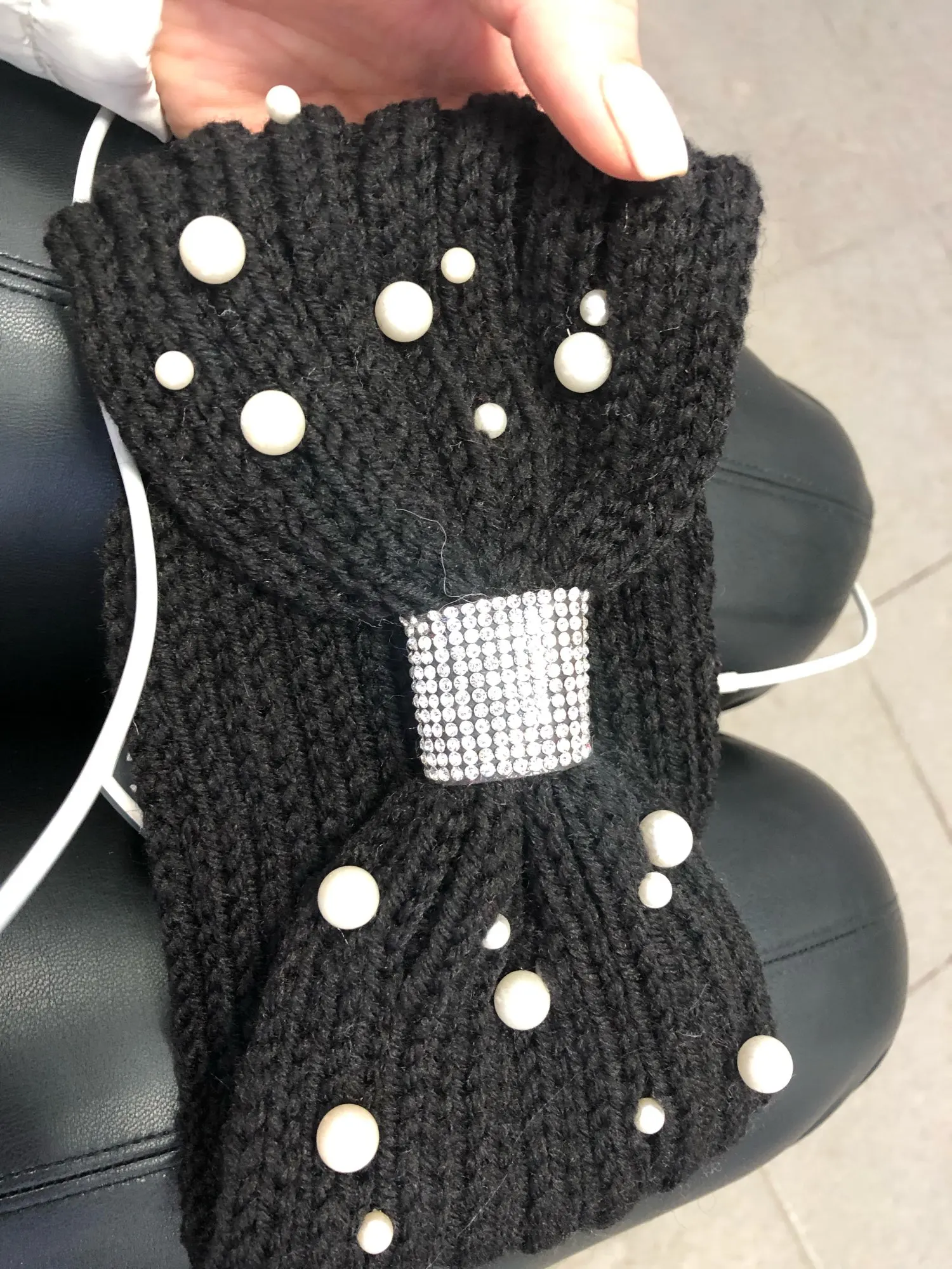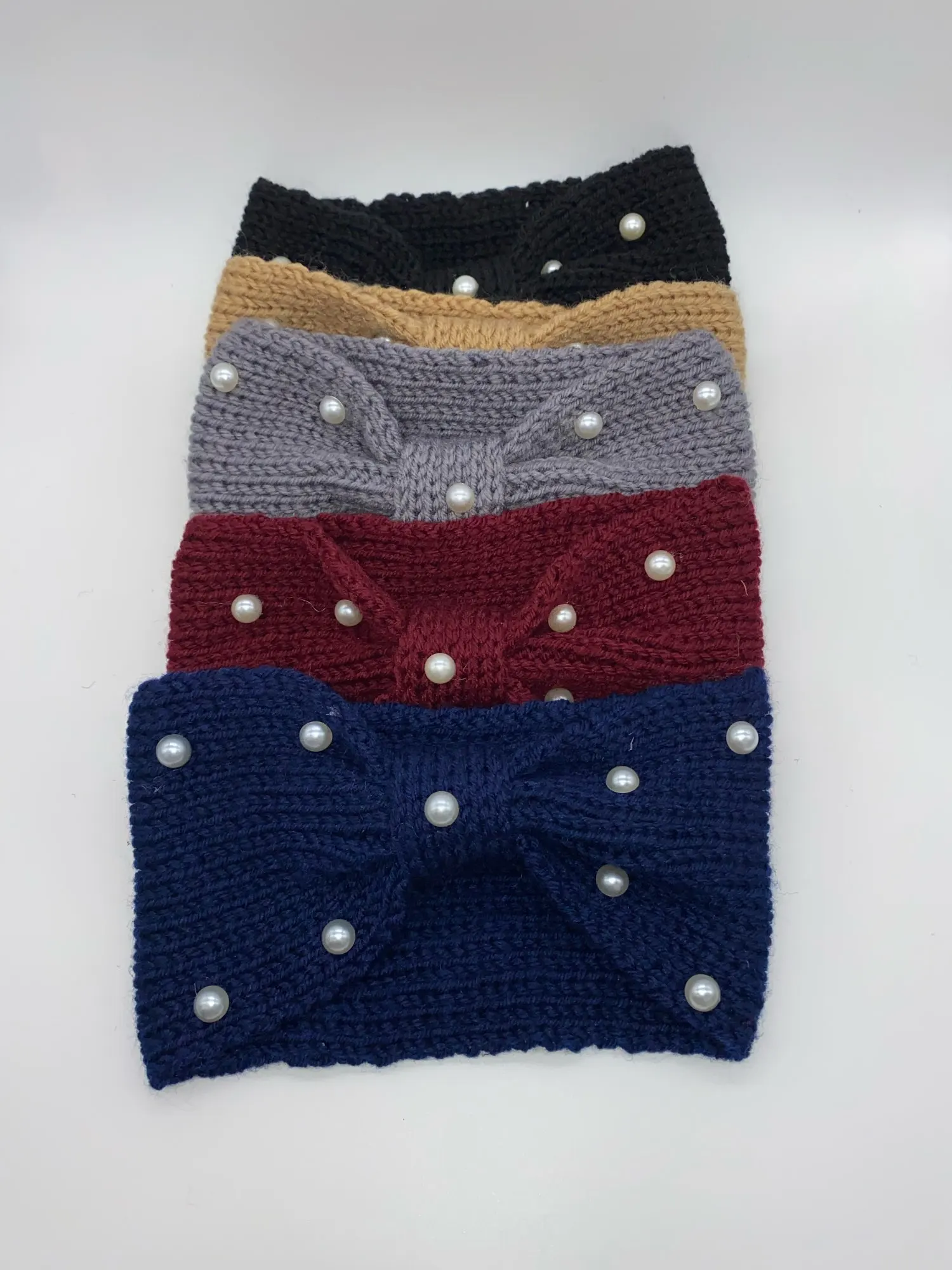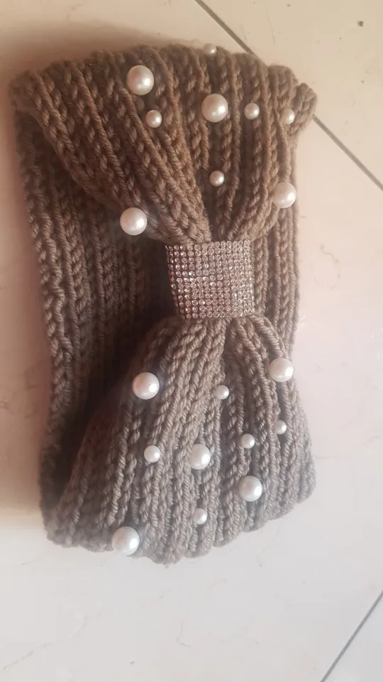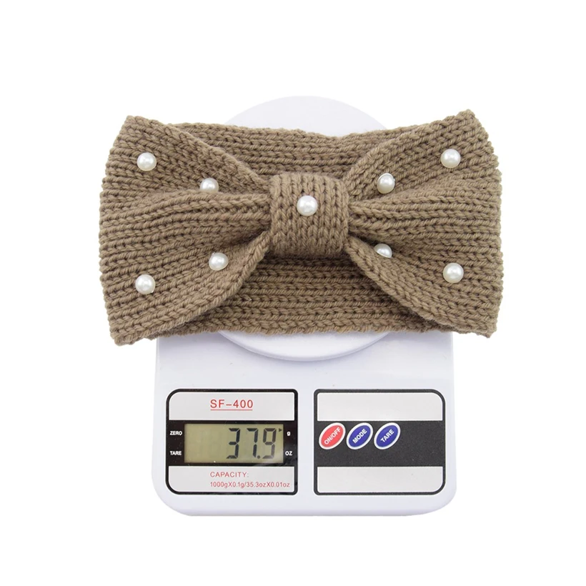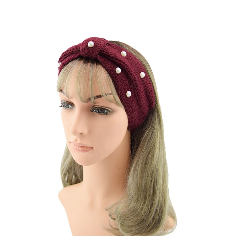 Повязка на голову женская вязаная, с жемчугом, с узлом, тюрбан, осенне-зимние модели