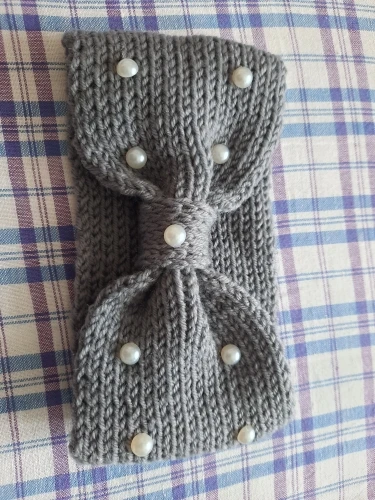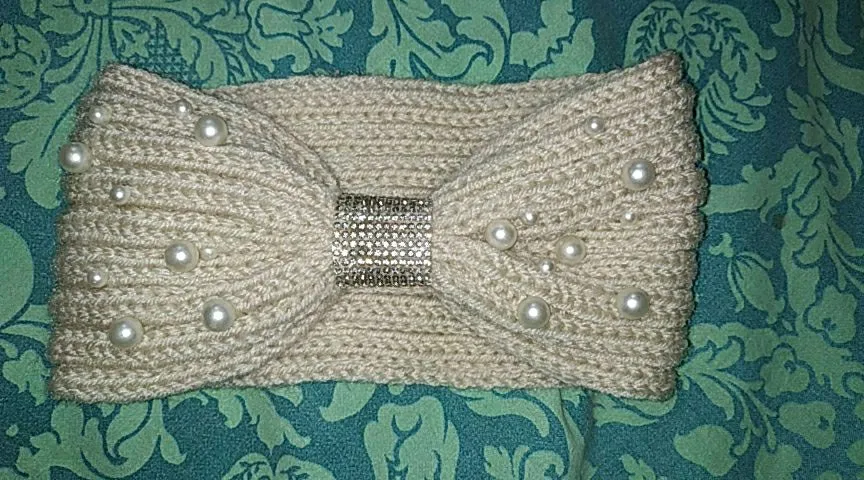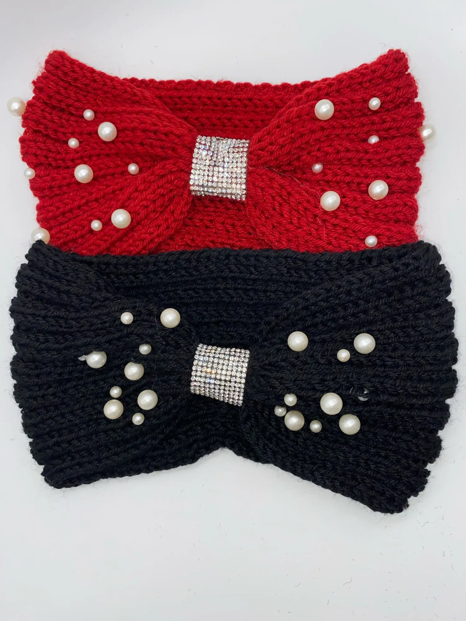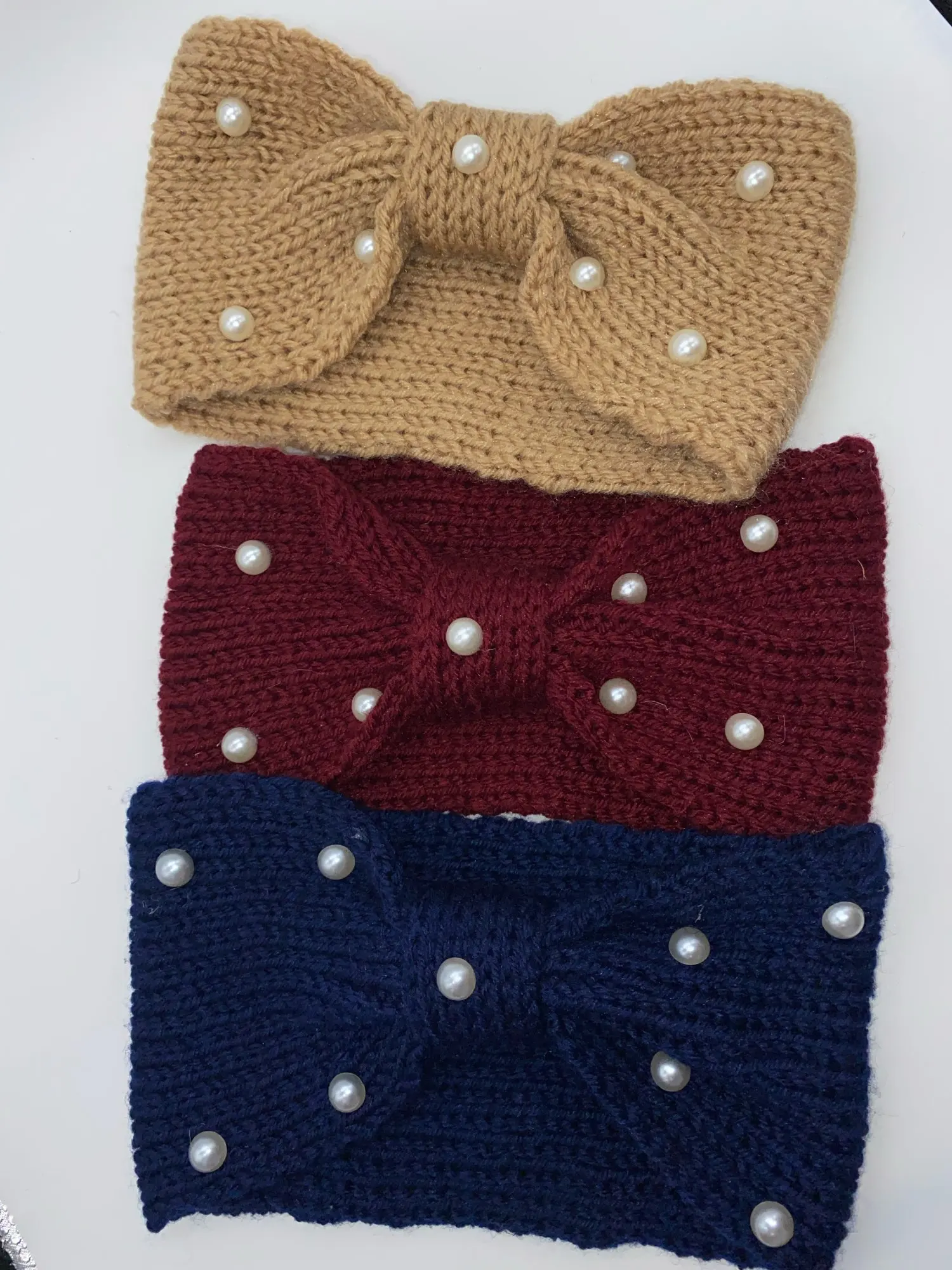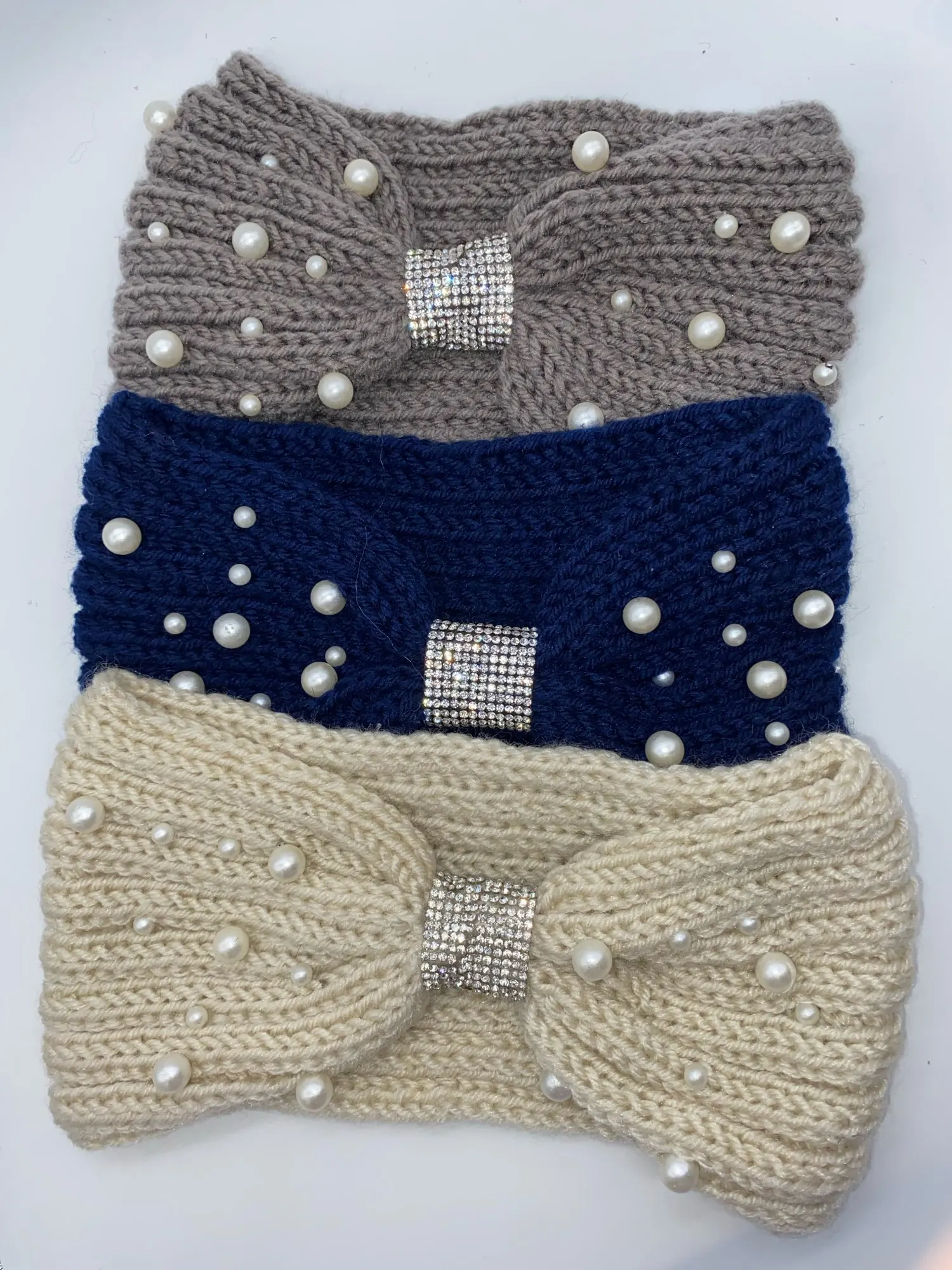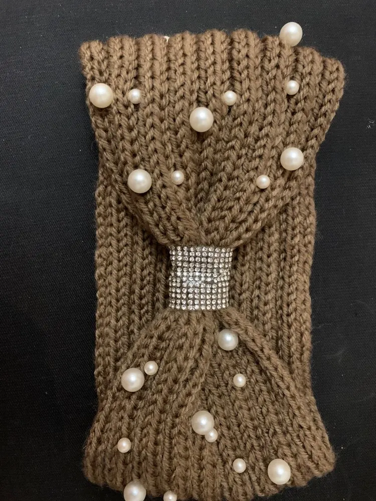 Повязка на голову женская вязаная, с жемчугом, с узлом, тюрбан, осенне-зимние модели