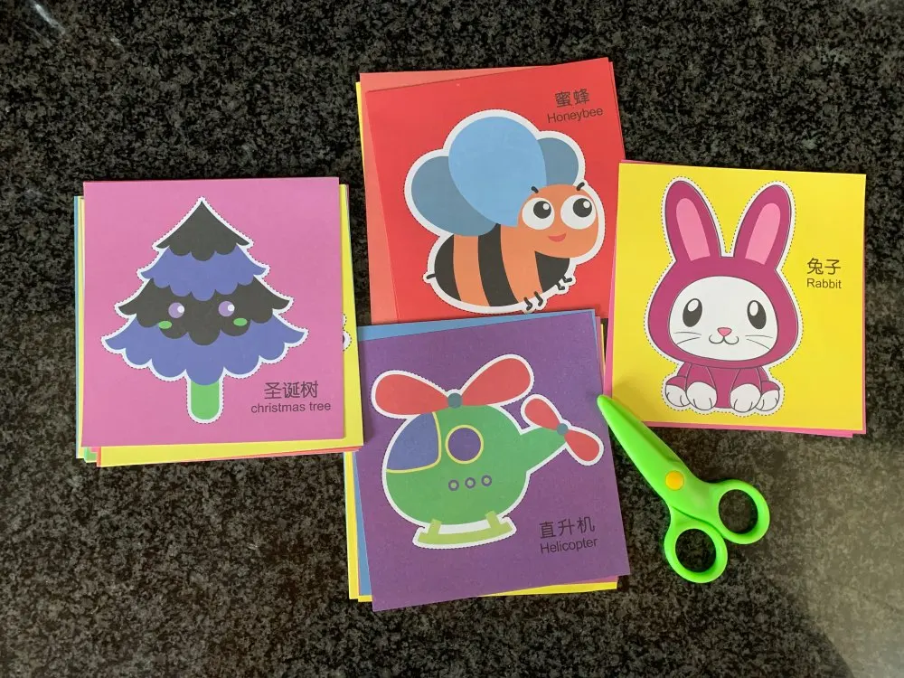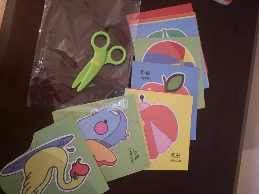 очень красочные карточки, безопасные ножницы в комплекте, режут хорошо. всем рекомендую