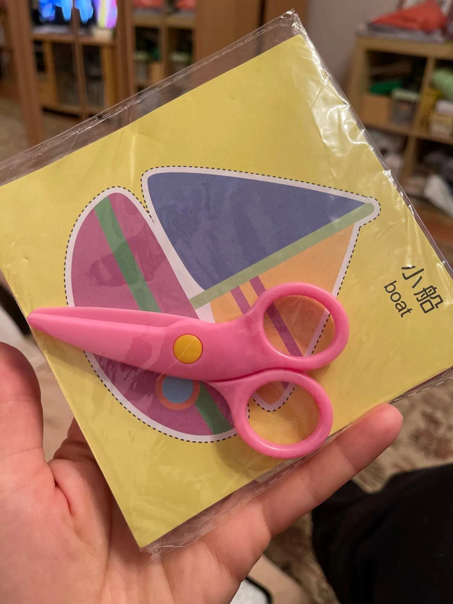 не знаю, у кого ножницы острые, но мой ребенок намучался вырезать ими. Взрослому норм, если резать самым глубоким местом ножниц. Кончиками перегибается листочек. Тем не менее, ребенку понравилось вырезать. 4 года - пока вырезаем что попроще.