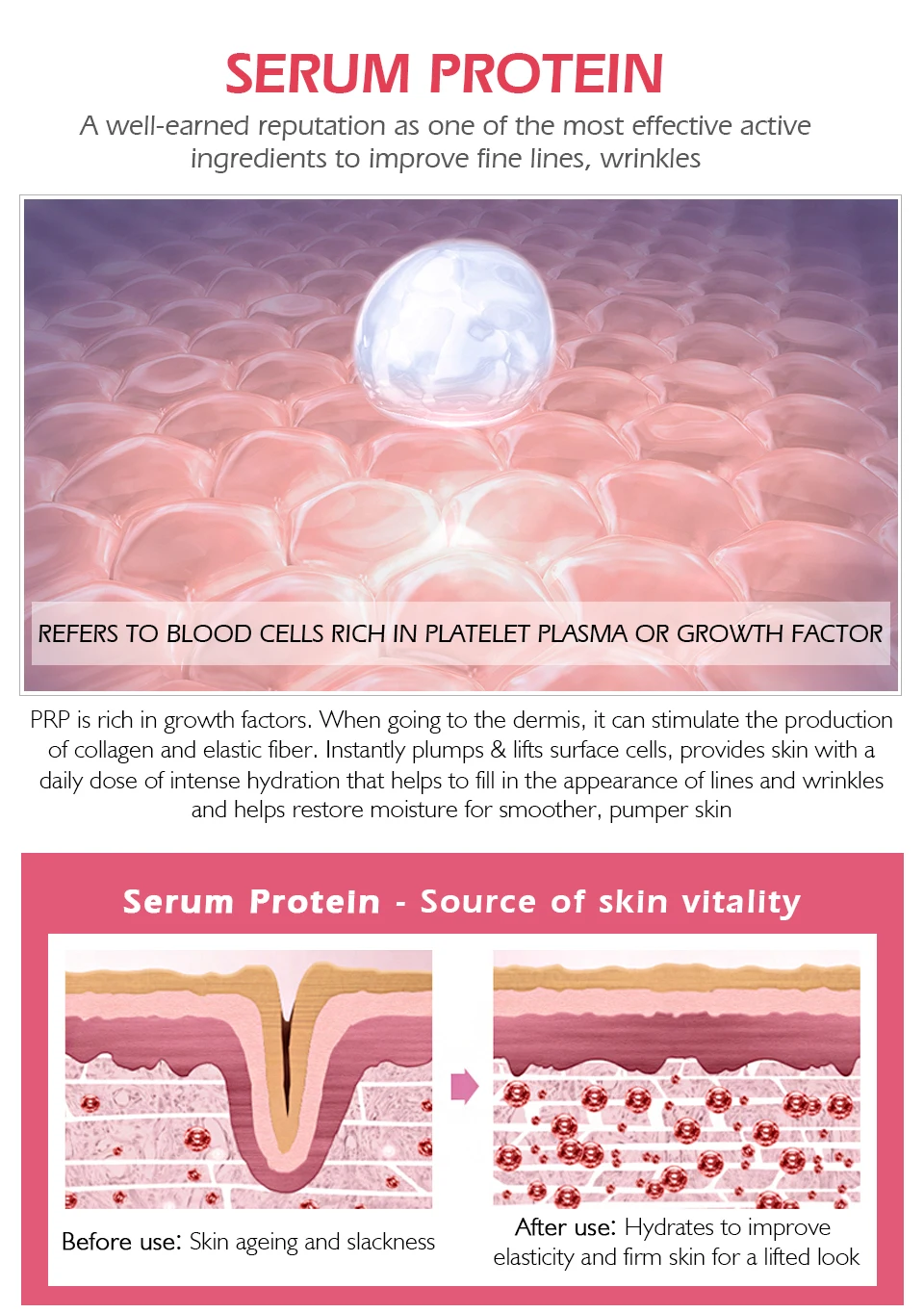 ПРП богат факторами роста. При посещении дермы, она может стимулировать выработку коллагена и эластичных волокон. Мгновенно утолщает и приподнимает поверхностные клетки, обеспечивает кожу; Ежедневная доза интенсивного увлажнения, которая помогает заполнить появление морщин и линий, а также помогает восстановить влагу для более гладкой и пухлой кожи