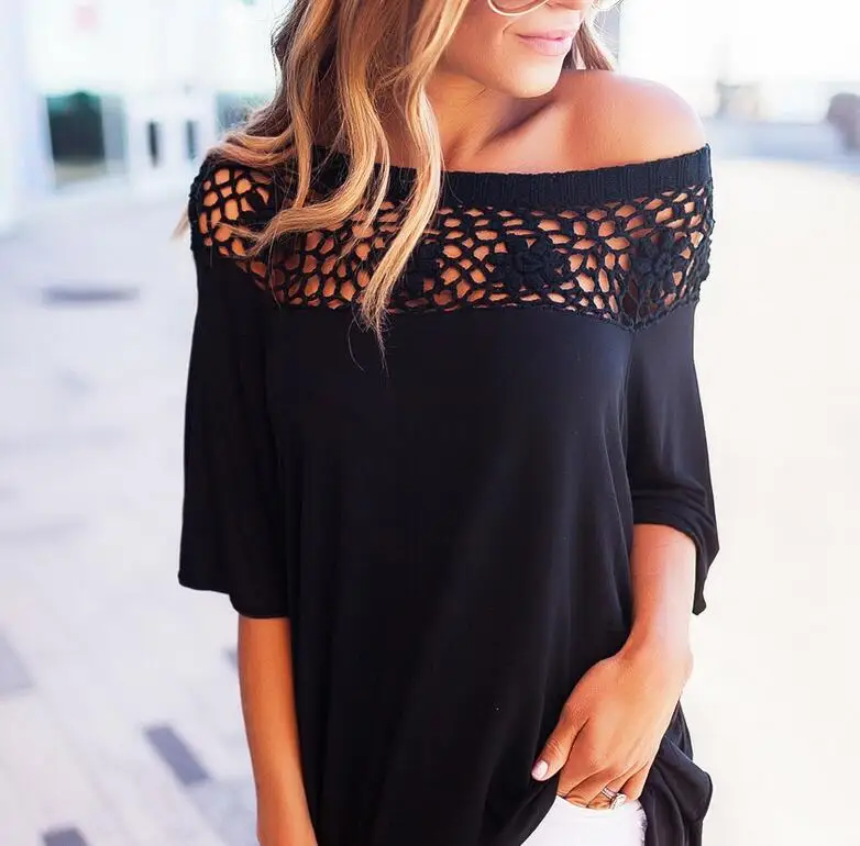 Пикантная белая кружевная блузка, рубашка, женские топы, элегантная ажурная блузка, летние топы, однотонная женская блузка в стиле пэчворк, блузы с открытыми плечами