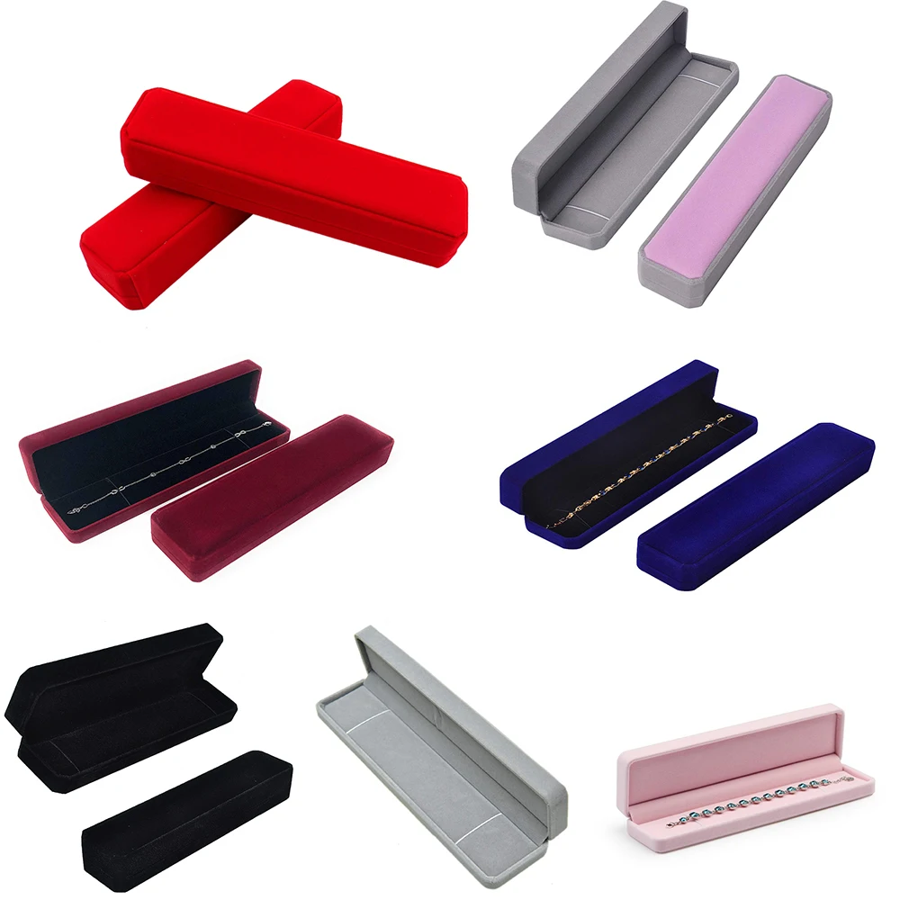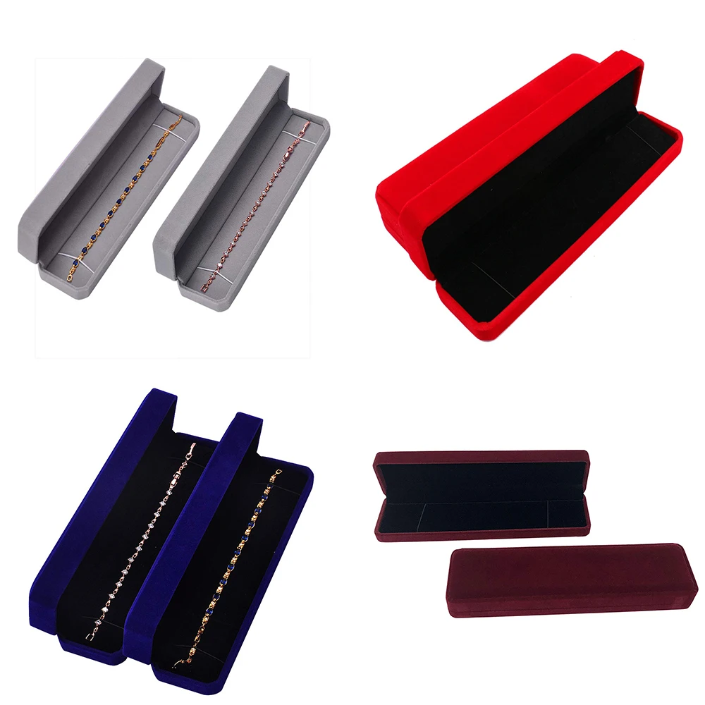 Элегантный бархатный браслет для браслета и ожерелья, футляр для часов, длинная прямоугольная цепочка, Подарочный дисплей для хранения