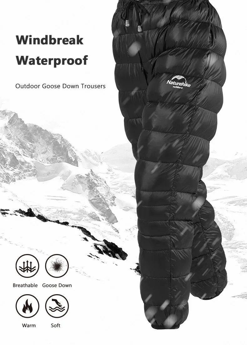 Naturehike зимние утепленные брюки унисекс с гусиным пухом, водонепроницаемые ветрозащитные теплые штаны с гусиным пухом для катания на лыжах