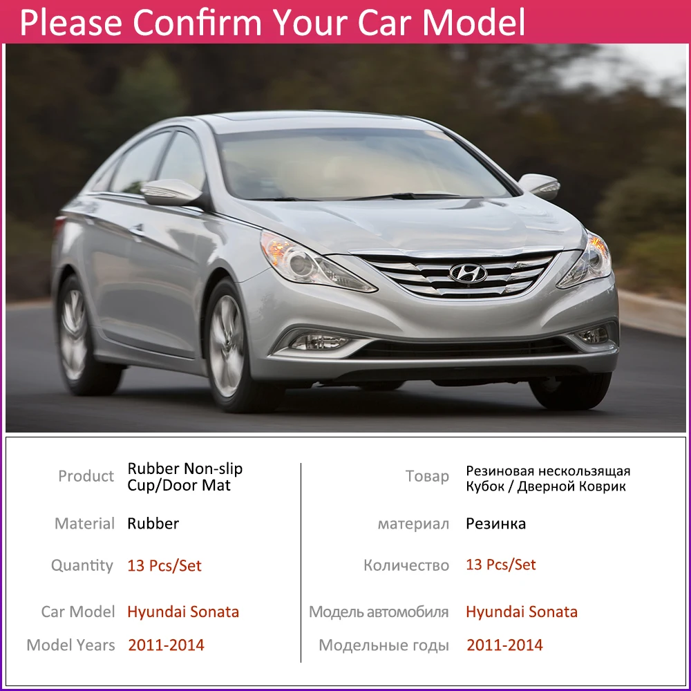 Нескользящий Резиновый Коврик Для подстаканника, дверной паз, коврик для Hyundai Sonata YF i45 2011 2012 2013 2014, 13 шт., аксессуары, коврик для телефона