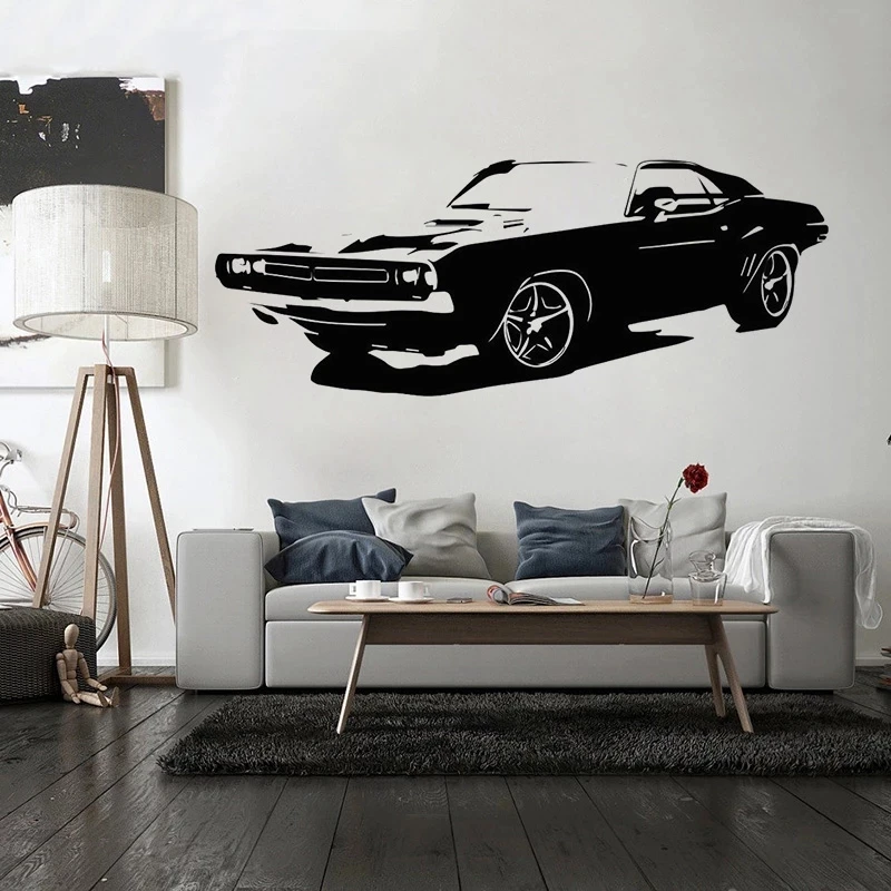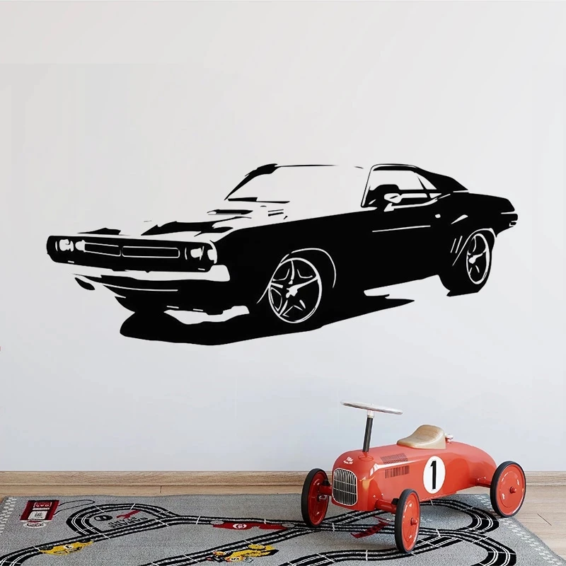 Большой автомобиль Dodge Challenger наклейки на стену спальни Фреска Искусство домашний декор Креативные украшения виниловый плакат AY1954