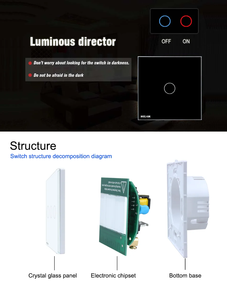 WELAIK ЕСВеликобритания 86*86 мм 1 комплект 1 канал Хрустальная сте...