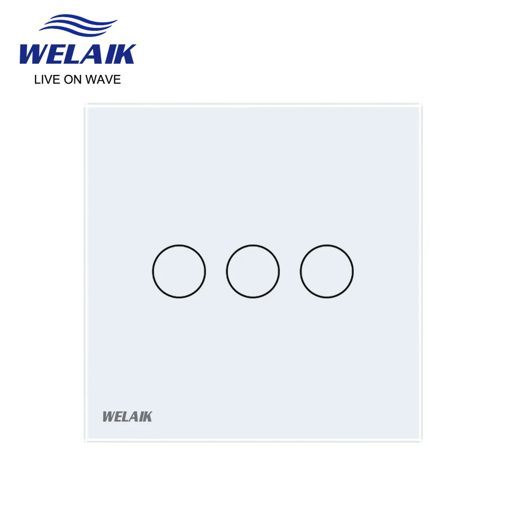 Стеклянная панель WELAIK ЕСВеликобритания 86*86 мм 3gang1way, умный светильник, умный Белый настенный сенсорный выключатель 220 В B1931CW