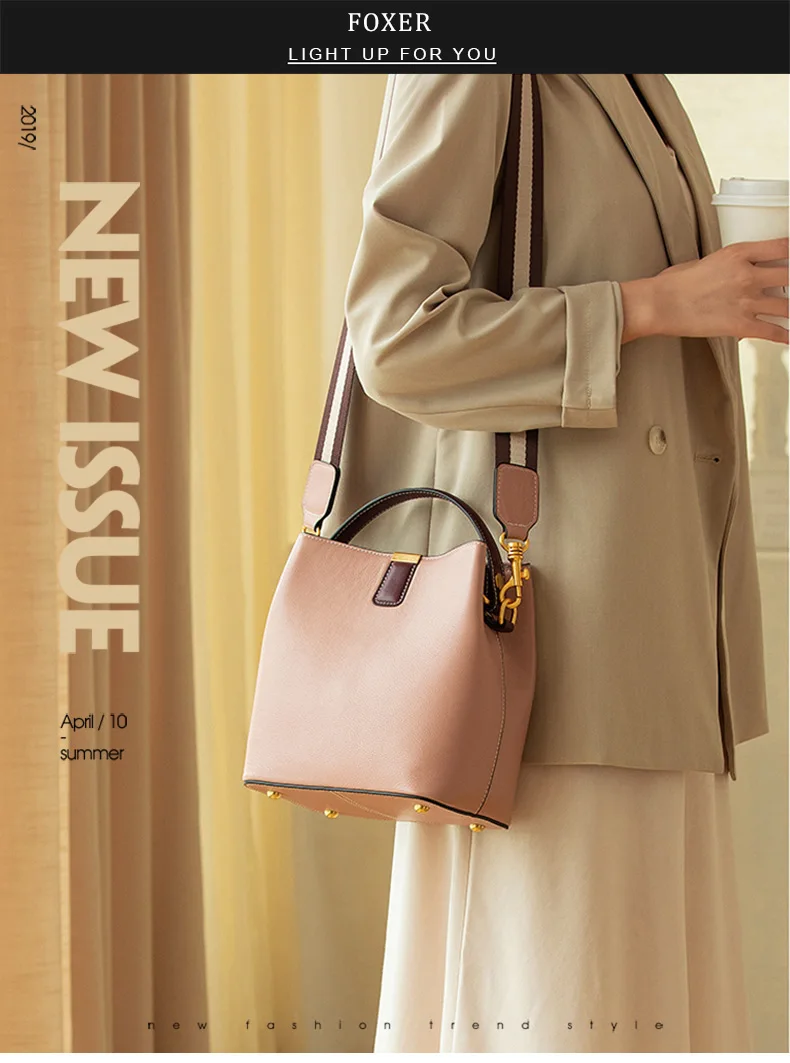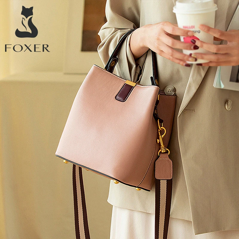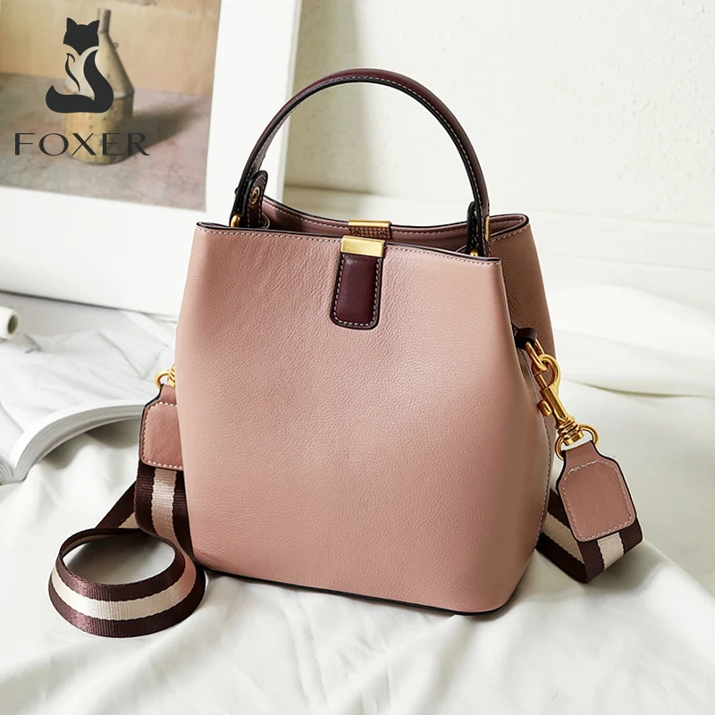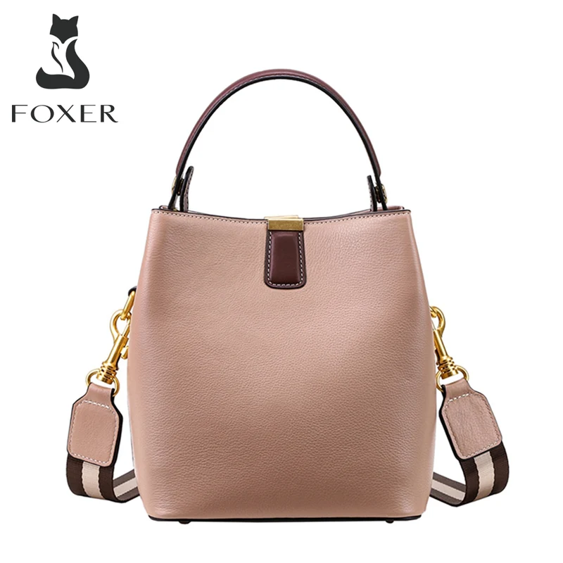 FOXER Коровьей Ведро Сумка Lady Messenger Сумка Круглая Женская Высокого Качества Стильная Сумка и Сумки Элегантная Женская Сумка Большой Емкости