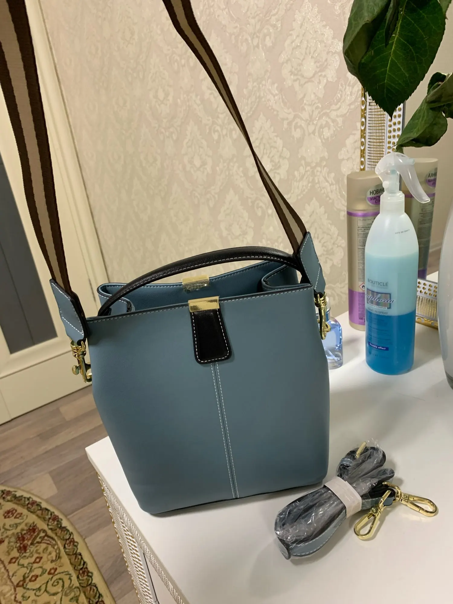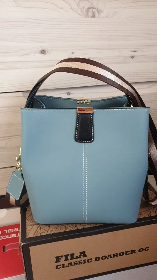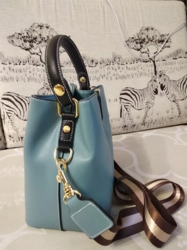 Сумка офигенная. Доставка супербыстрая ( и это в новогодние праздники! ) У меня голубая, абсолютно точно соответствует фото. Фурнитура не ярко жёлтая, а приглушённого оттенка. В дороге не помялась, форму держит. Пахнет кожей, выглядит отлично. Спасибо продавцу и алиэкспресс!