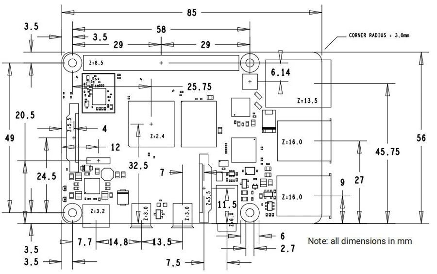 Плата работает хорошо, доставка очень быстрая. Но слот для камеры имеет деформацию. К сожалению, он изготовлен из мягкого белого пластика (и мне не нужна камера, LOL!), так что это не проблема. SoC очень горячий! Поэтому чехол с охлаждающим вентилятором или, по крайней мере, большим радиатором абсолютно необходим.