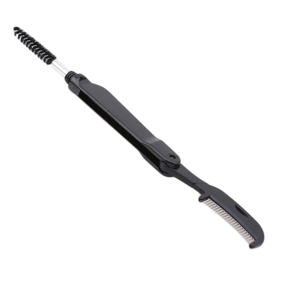 Расческа для бровей и ресниц, черная, складная, стальная, с двойной головкой, инструмент для макияжа ресниц