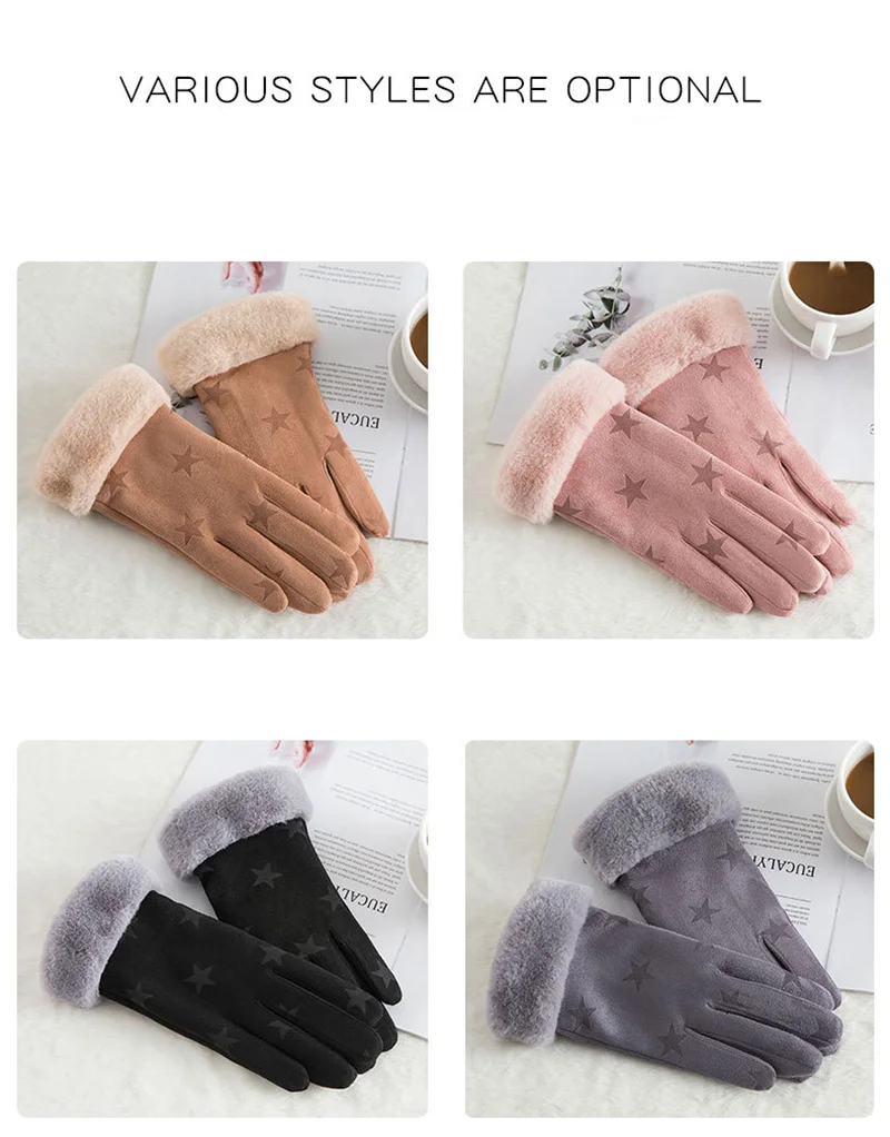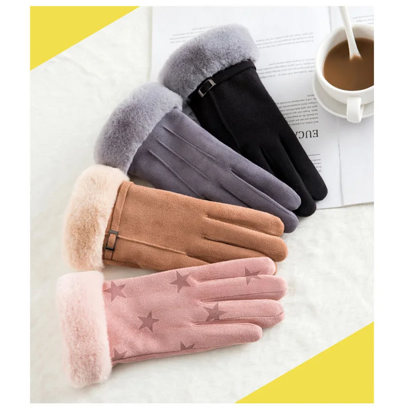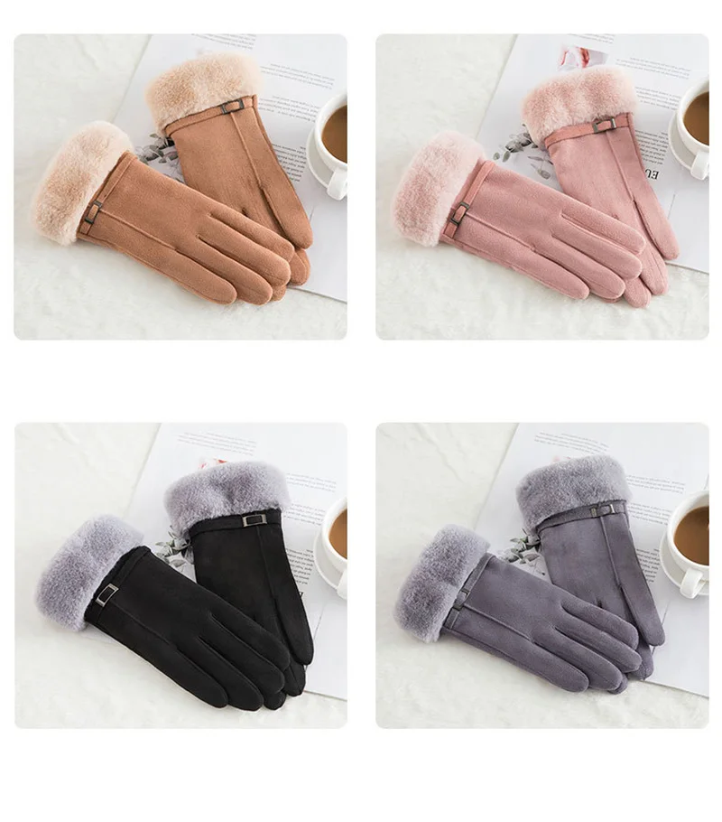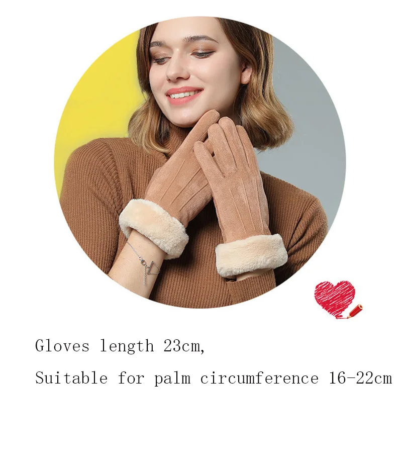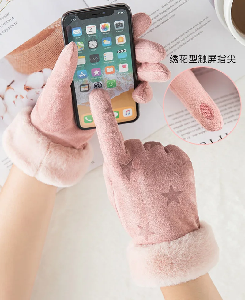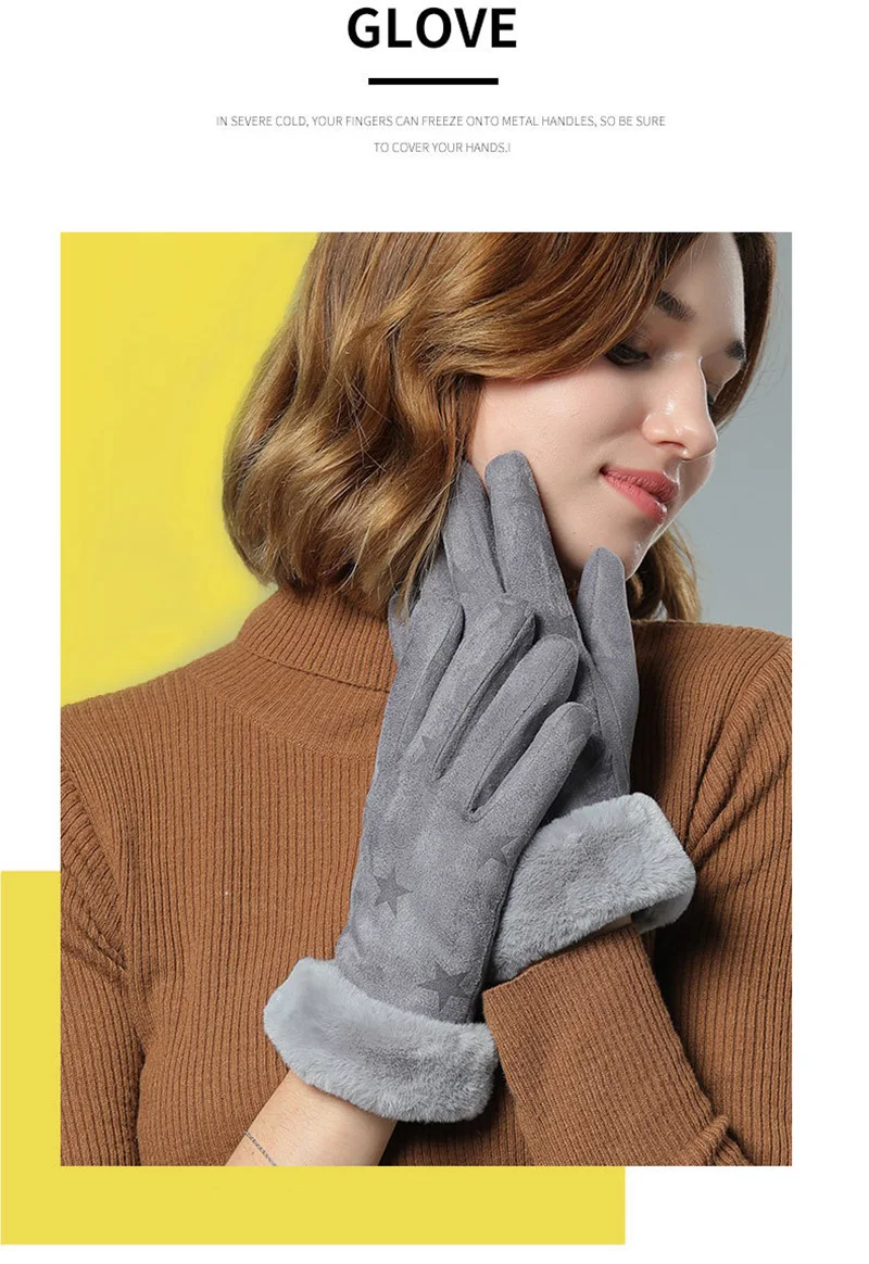 Зимние женские двойные толстые плюшевые на запястье теплые кашемировые милые велосипедные Варежки женские замшевые кожаные перчатки для вождения с сенсорным экраном C56B