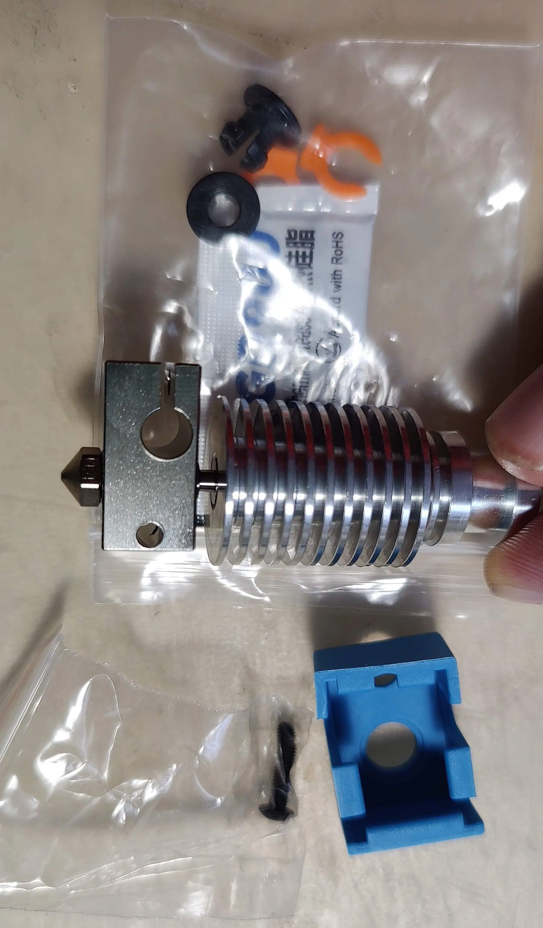 Хороший клон e3d v6, тяжелый с медным тепловым блоком. Нет помех с орбитальным Экструдером. Стоит дополнительных евро.