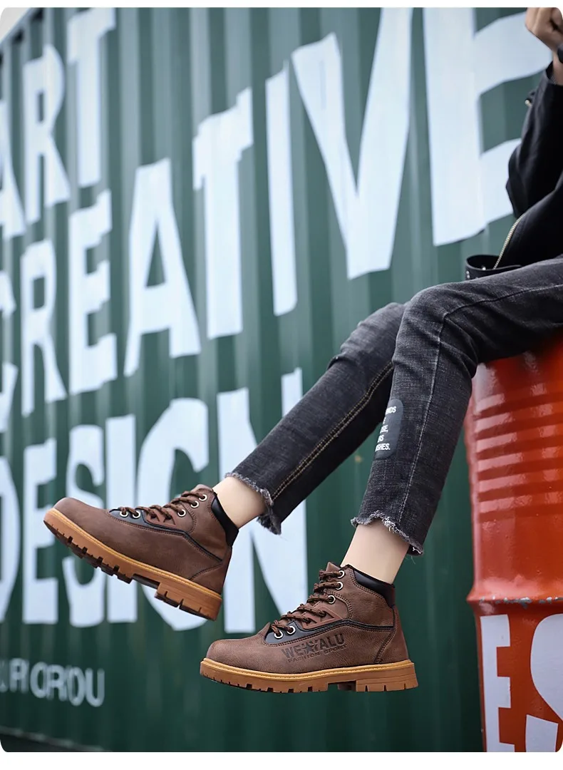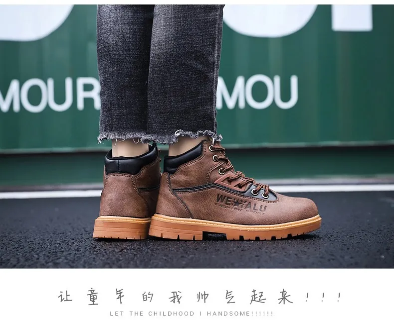 Осенне-зимняя детская обувь для девочек, зимние ботинки, Детские Ботинки Martin, кожаная Водонепроницаемая школьная Уличная обувь для мальчиков, кроссовки