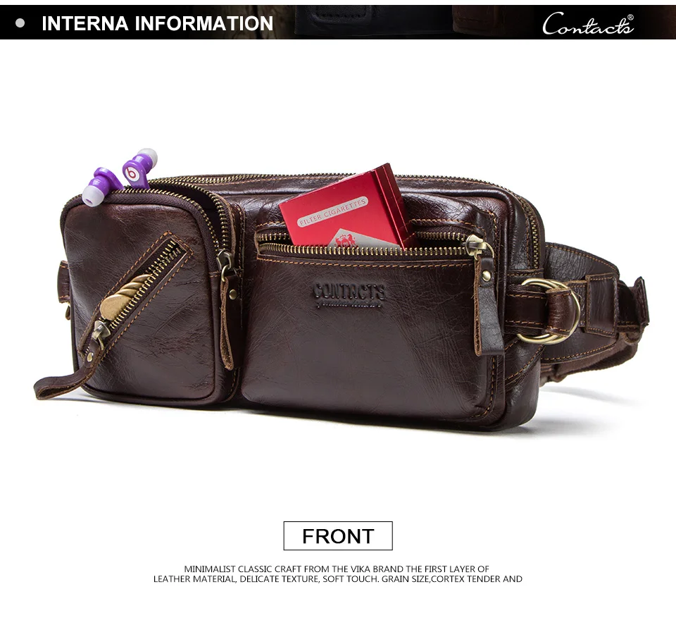 Брендовая дизайнерская поясная сумка Contact's из натуральной кожи для мужчин, забавная дорожная маленькая Мужская поясная сумочка для сотового телефона на молнии с кармашком для мелочи