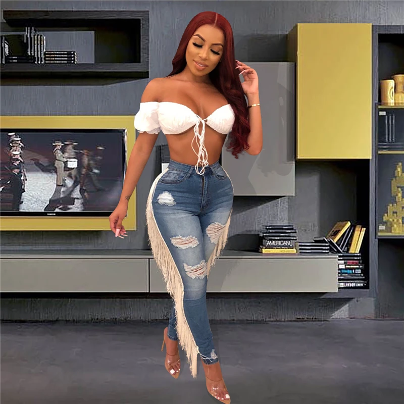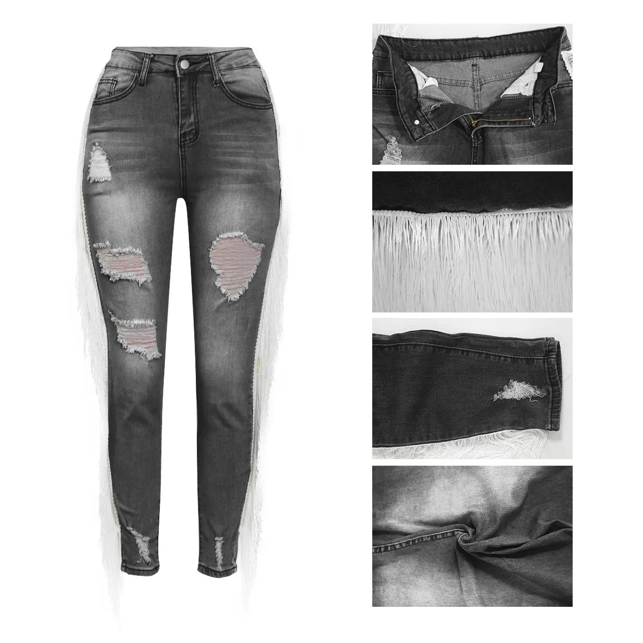 Женские потертые джинсы Adogirl, повседневные джинсовые брюки с бахромой и дырками, для ночного клуба, для осени, 2019