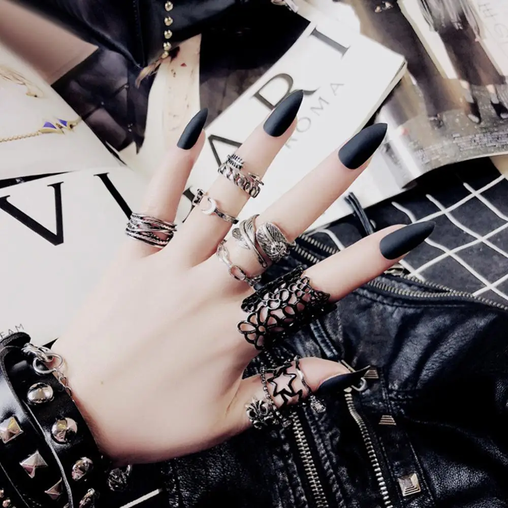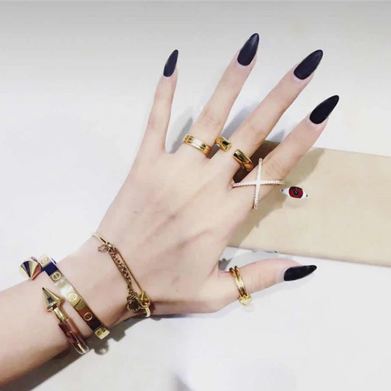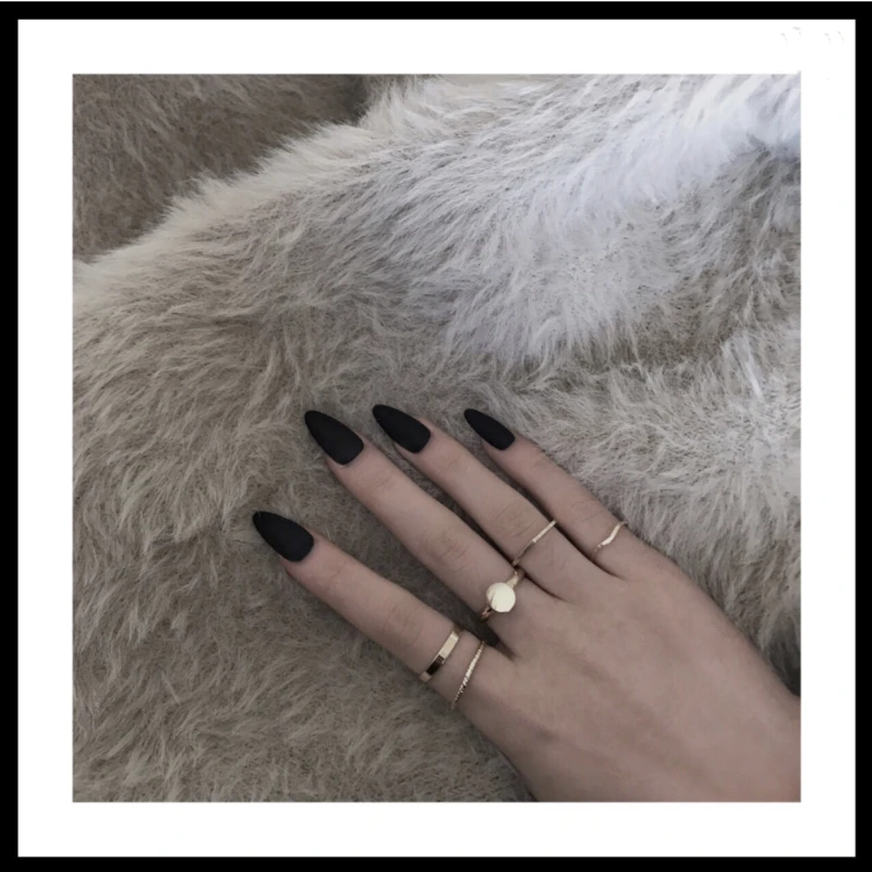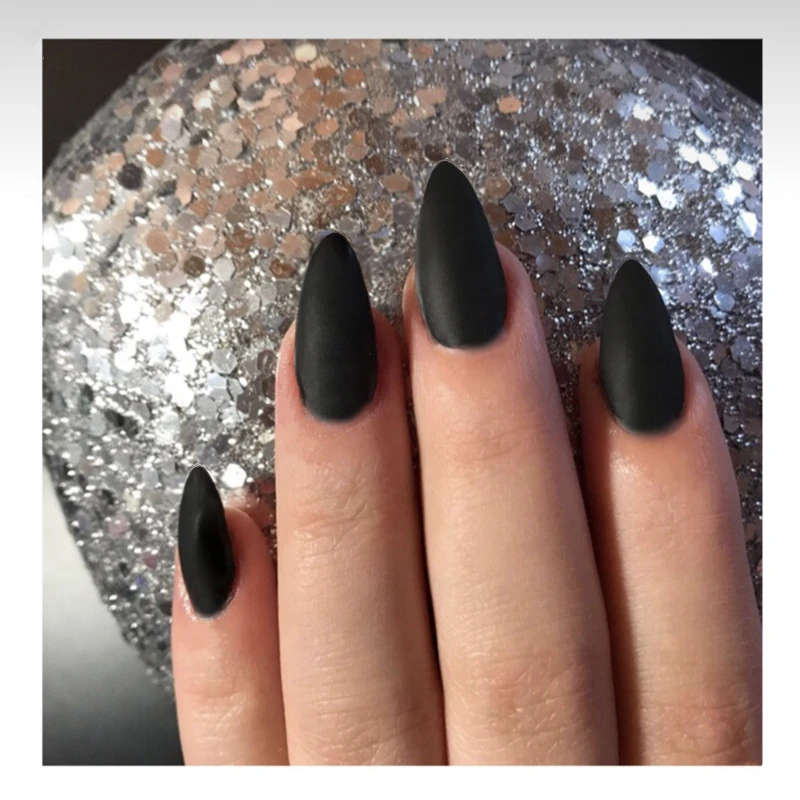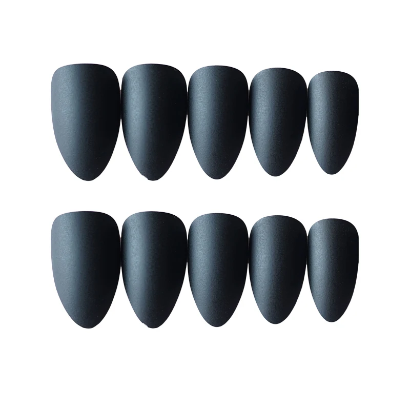 Высококачественные матовые черные маникюрные наклейки высокого качества для девушек, французская мода, пластиковые искусственные накладные наклейки для ногтей с клеевым гелем, 24 шт.