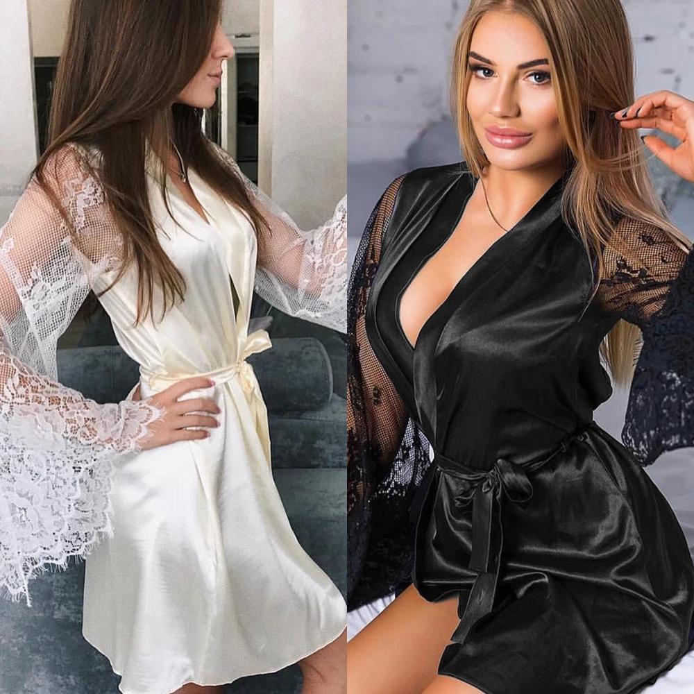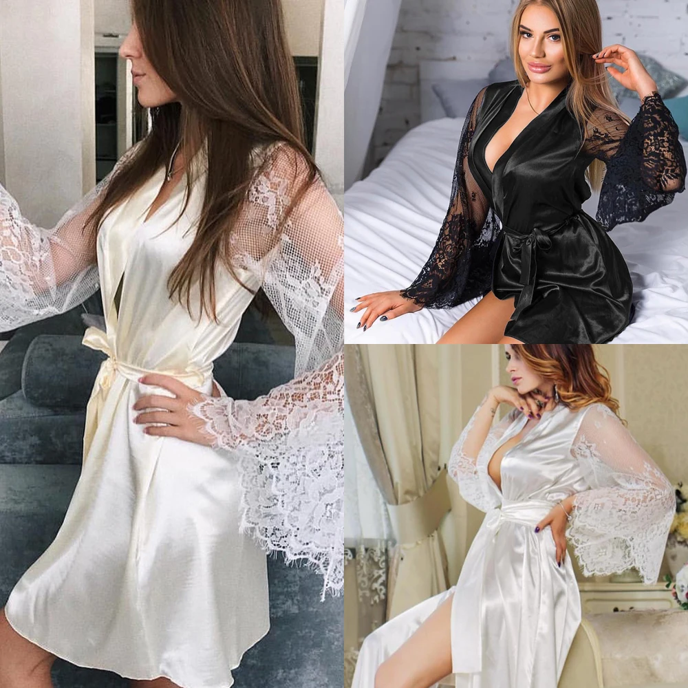 Сексуальные женские халаты, атласная одежда для сна, кружевной банн...