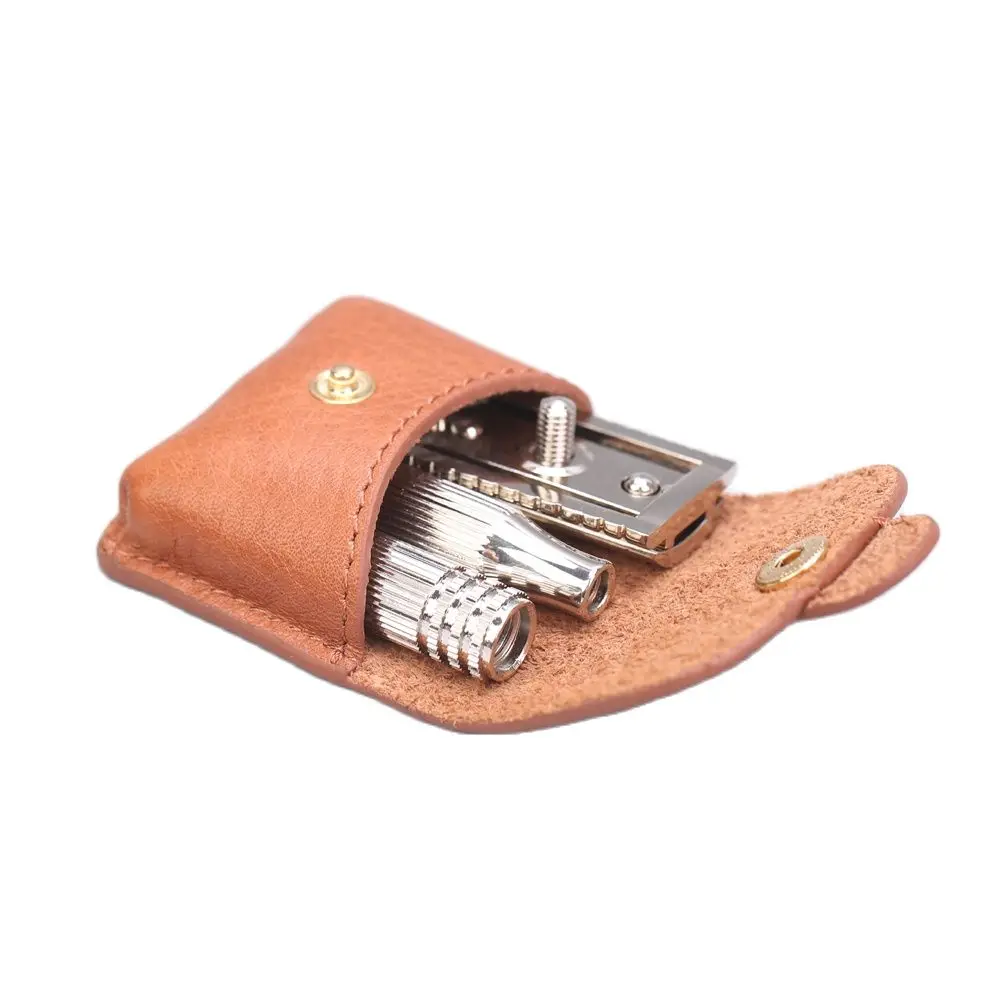 Дорожная бритва Yaqi никелевого цвета с кожаным чехлом