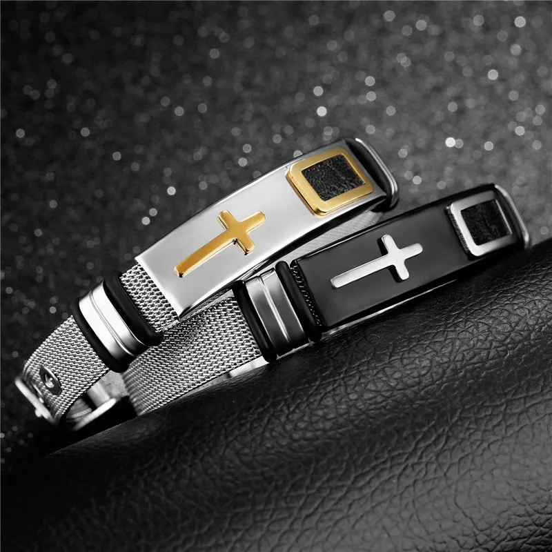 Браслет из нержавеющей стали для мужчин и женщин, регулируемый браслет в стиле панк, с сетчатым браслетом, с христианскими мотивами молитвы Креста