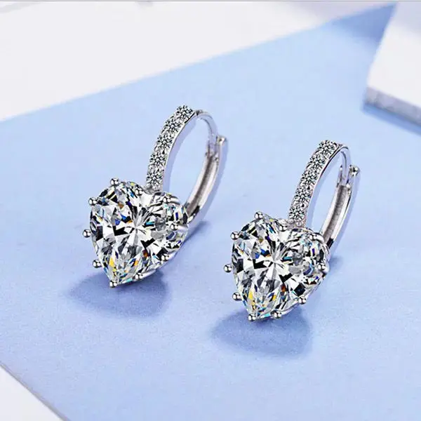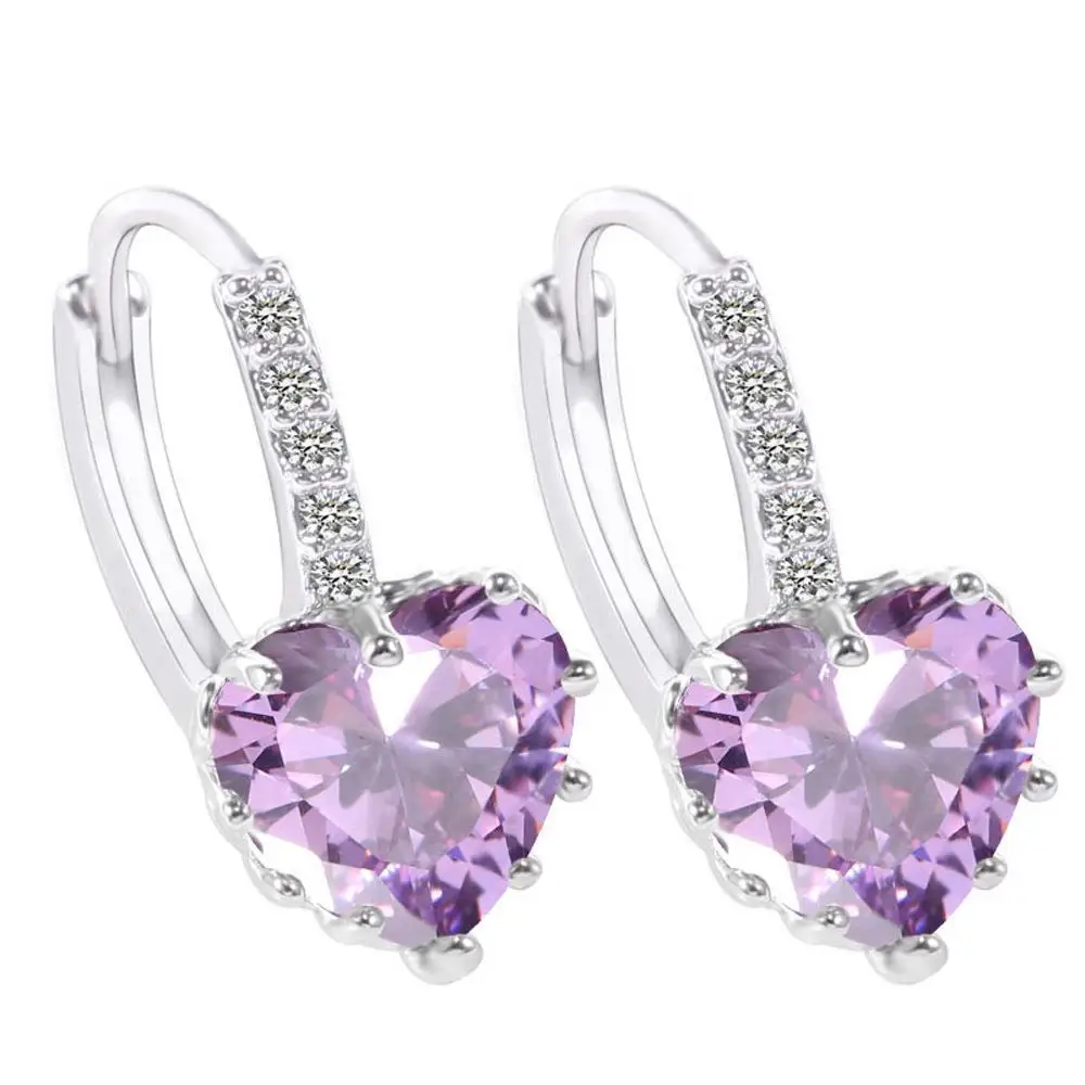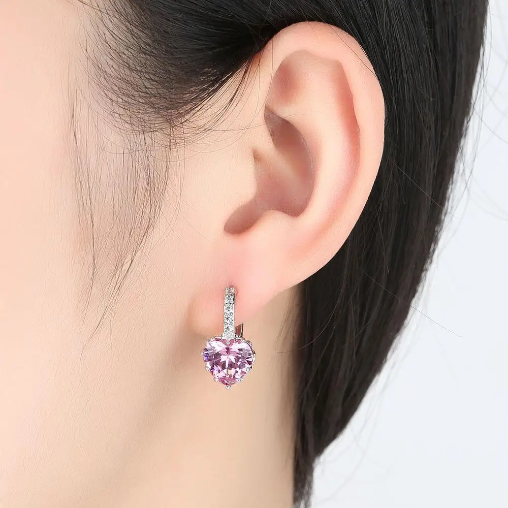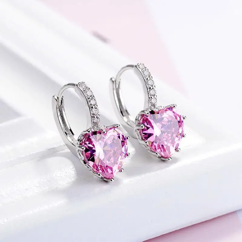 Женские серьги-подвески с розовым цирконом, в форме сердца
