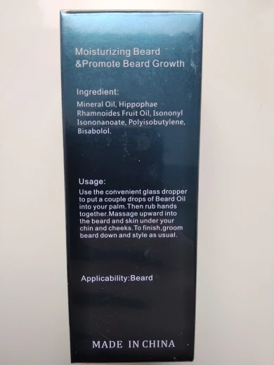 Заказ был сделан 03.01.21 получен 25.02.21. Был куплен за 0,01$ и монетки. Прибыл в целости и сохранности, без повреждений. Был хорошо упакован. За что благодарю продавца. Само масло ещё не использовал. Но я скептически настроен к его "эффекту роста". Так что буду использовать его просто, как масло для смягчения бороды, чисто для дополнительного питания волос. Состав вполне приемлем. После месяца использования, дополню отзыв.