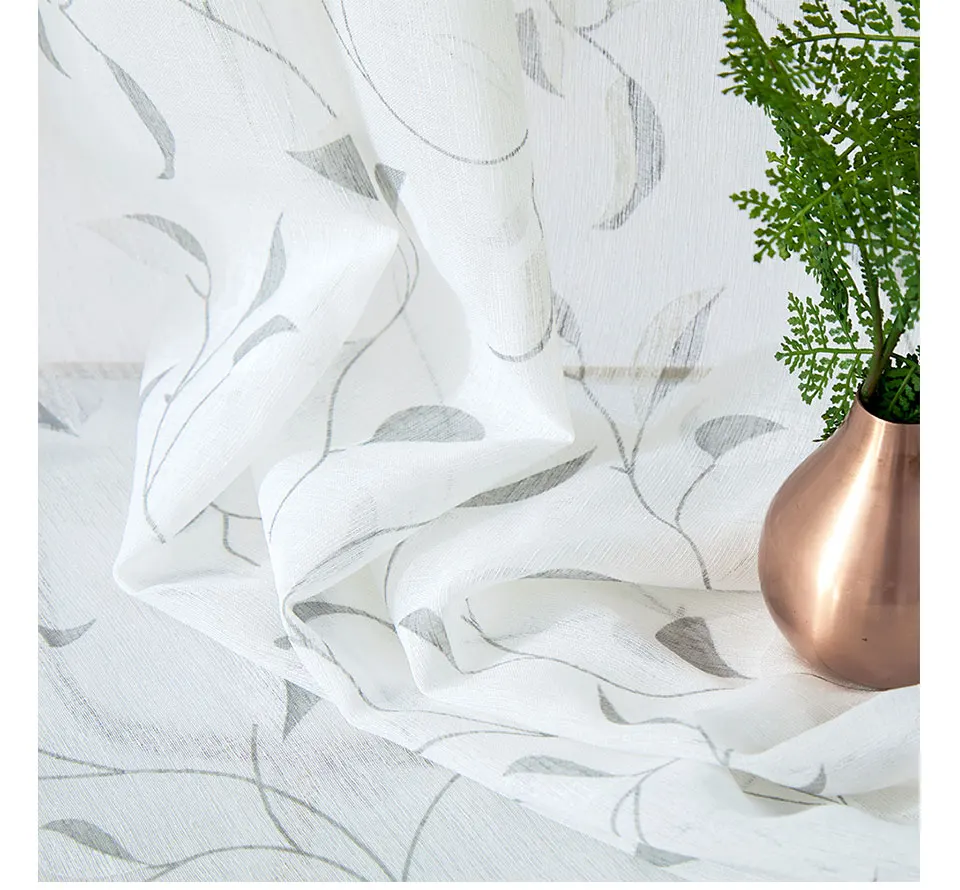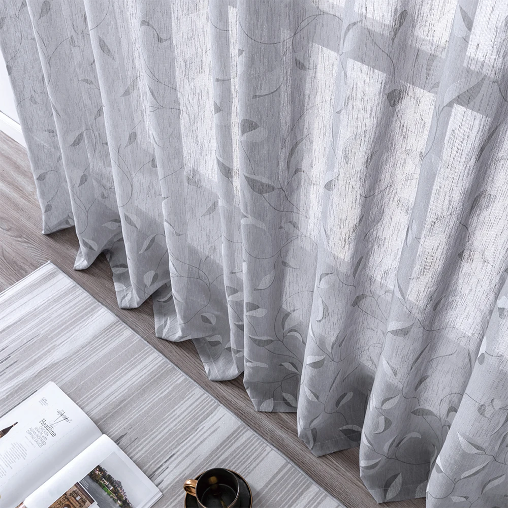 Прозрачные шторы с цветочным принтом, занавески из смешанного льна ...