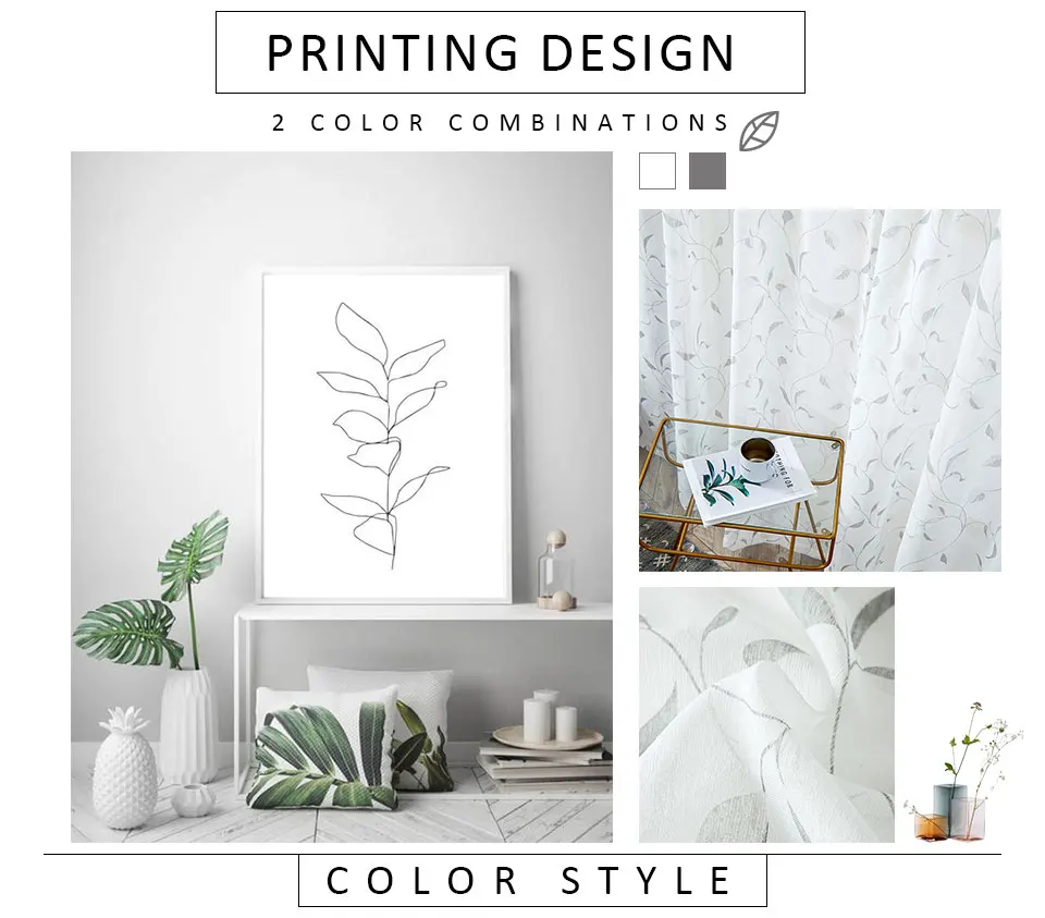 Занавеска CDIY из тюля, белая, для гостиной, с вышитыми листьями