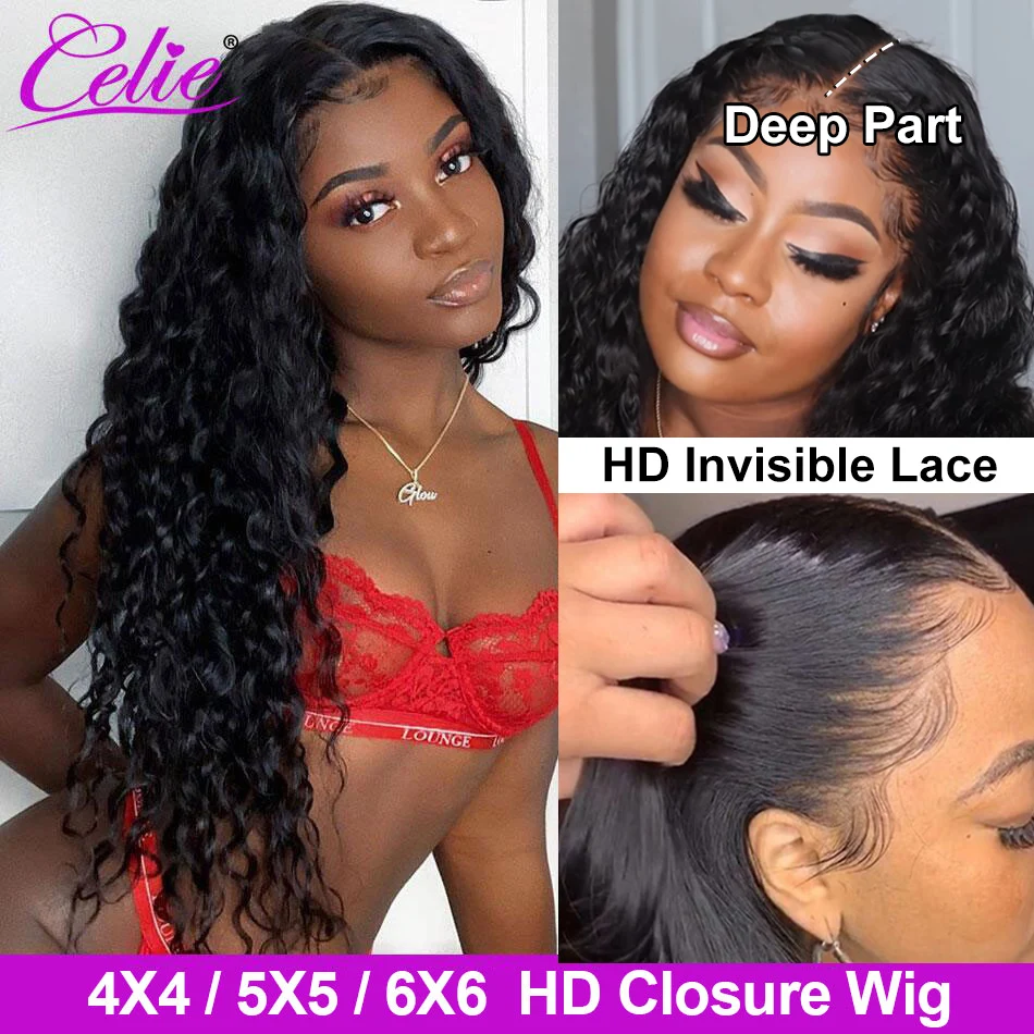 Парик на сетке Celie Hair 5x5, парик на водной волне, HD прозрачный парик на сетке спереди, парик на сетке спереди 4x4 6x6, парик на сетке спереди