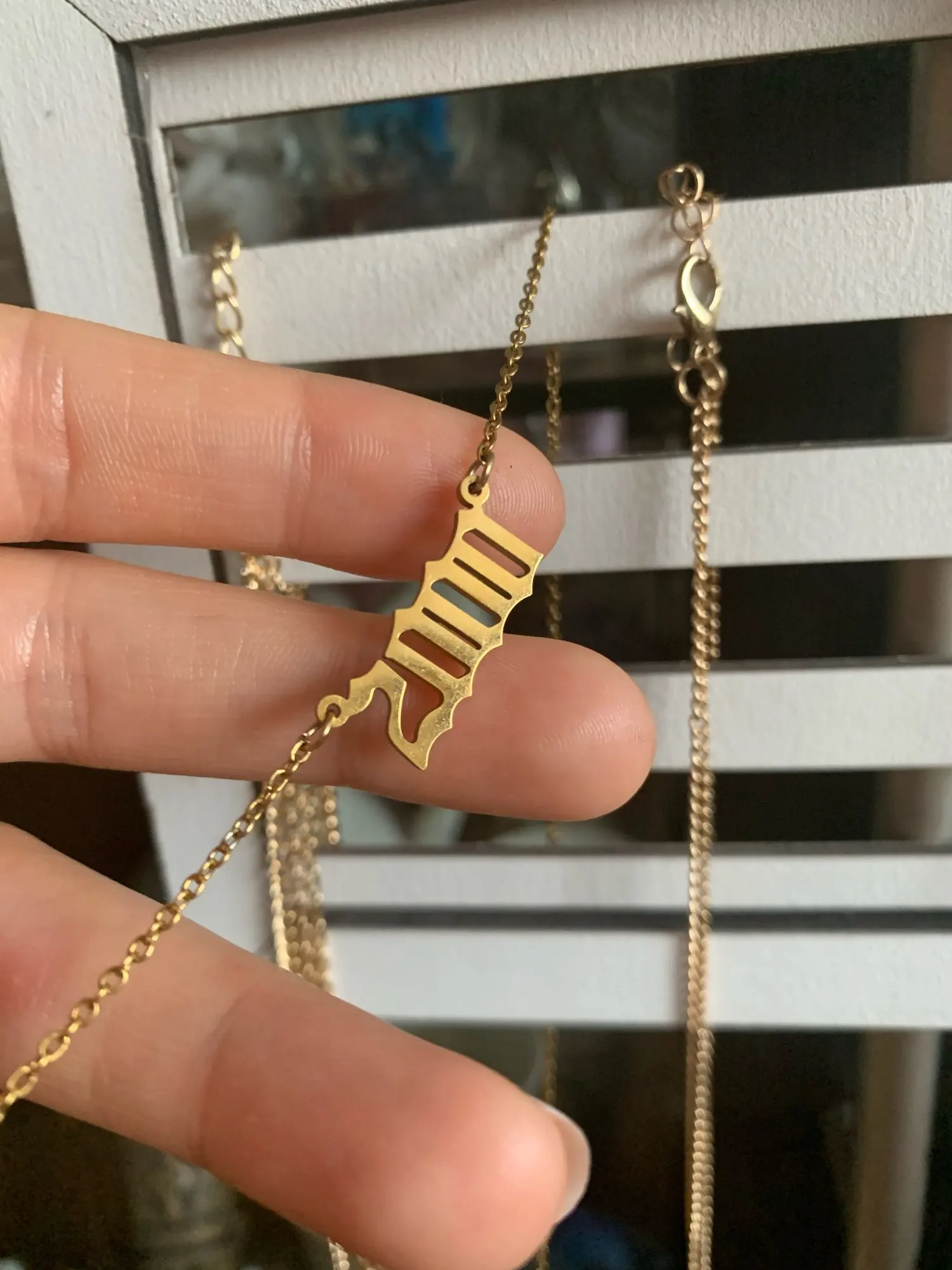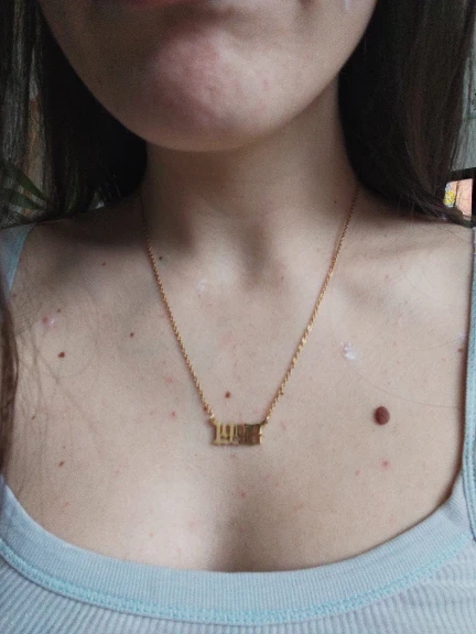 Мне очень понравилось. Это очень хорошее соотношение цены и качества. Я не снимаю его для душа. Я была с ним с лета и каждый день проводила его в бассейне. Он не становится уродливым. Сохраняет золотой цвет. Только Кольца, которые связывают номер с цепочкой, были слегка испорчены, но вы почти не можете сказать. Мне понравилось.