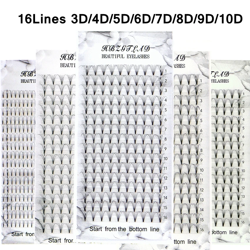 16 линий 56810D русские Объемные Накладные ресницы для удлинения с коротким стержнем готовые вентиляторы норковые falsh ресницы для индивидуального наращивания