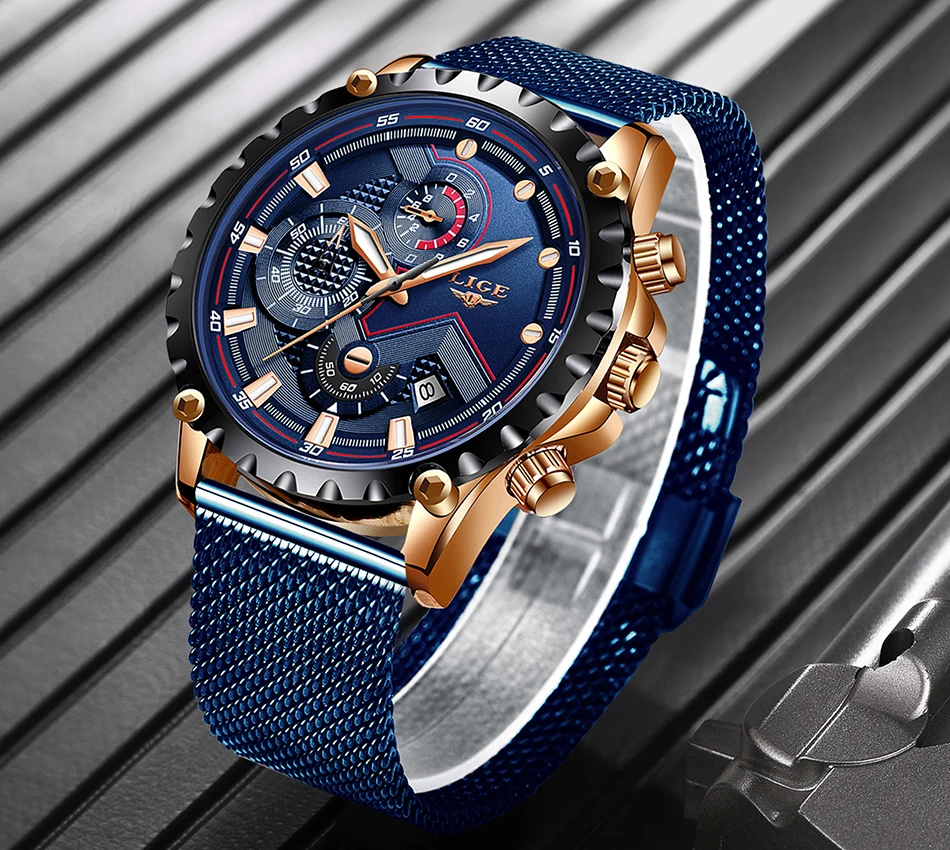 Новинка 2020 LIGE синий Повседневный сетчатый ремень модные кварцевые наручные часы Мужские часы Топ бренд Роскошные водонепроницаемые часы Relogio Masculino