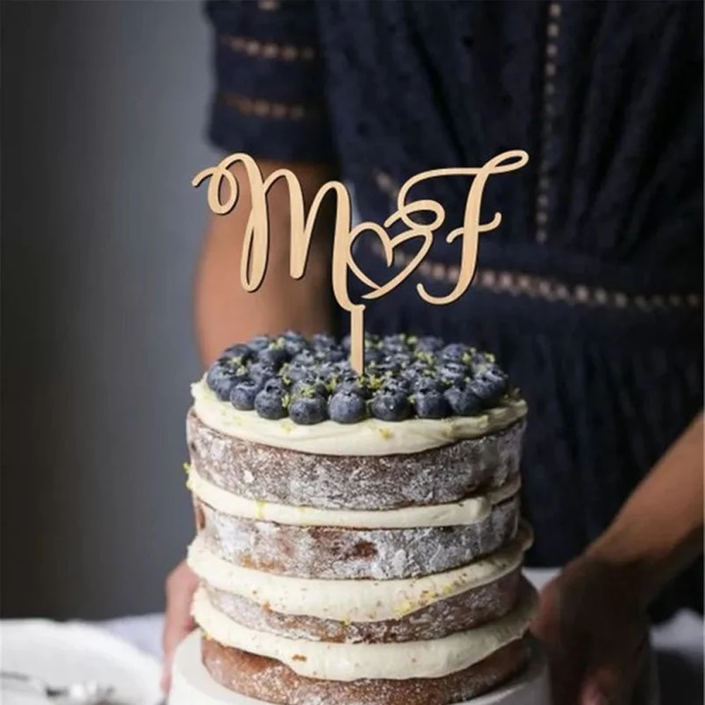 На заказ Mr & Mrs инициалы свадебный торт Топпер с сердцем, персонализированные юбилей торт Топпер, деревенские вечерние украшения для помолвки