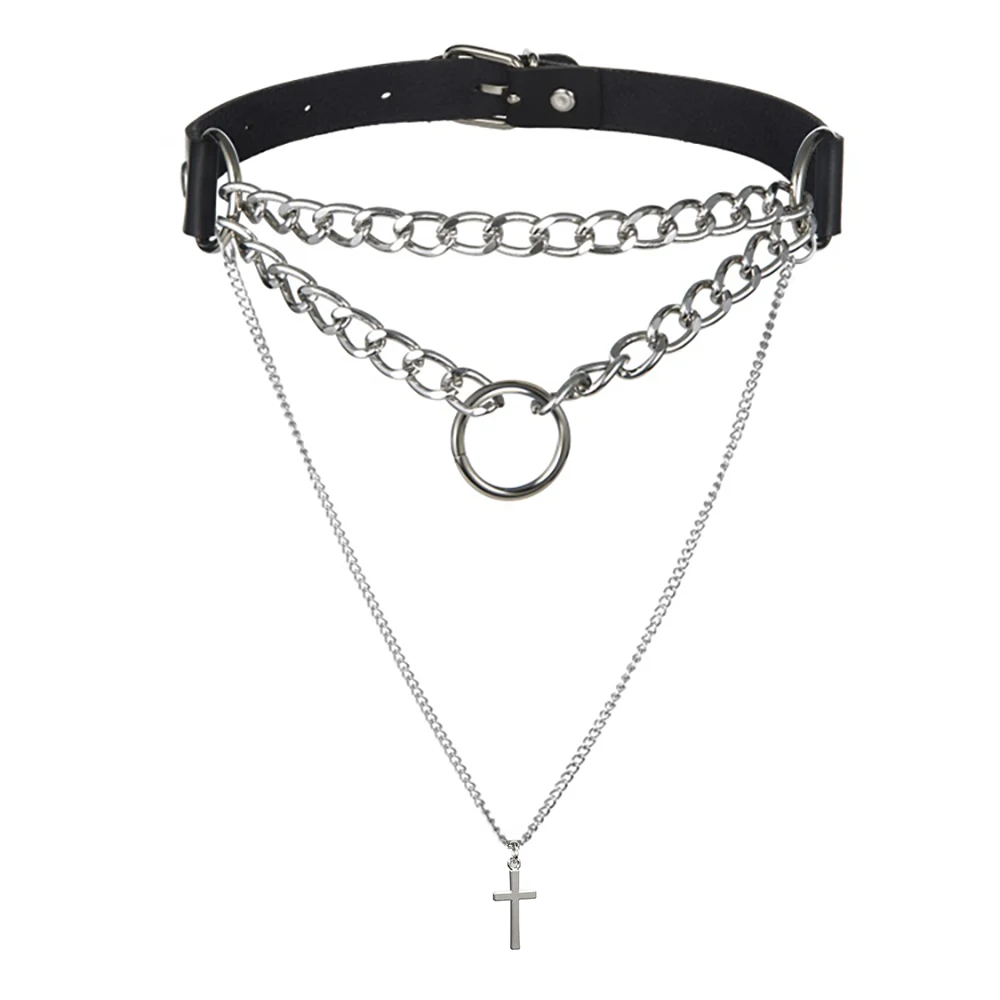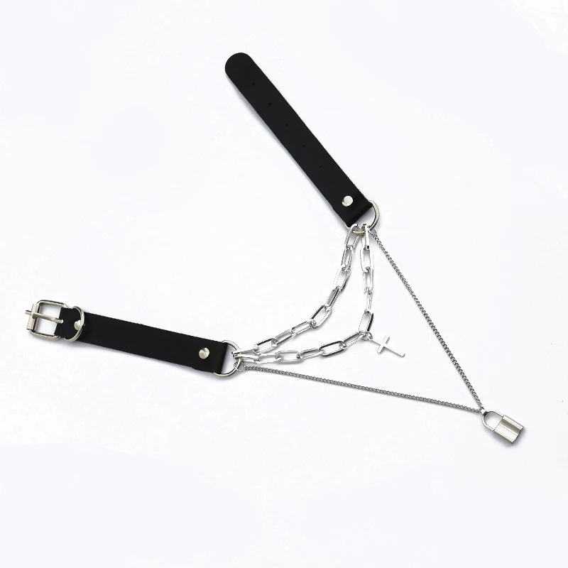 Ожерелье с подвеской-крестом в стиле панк с замком