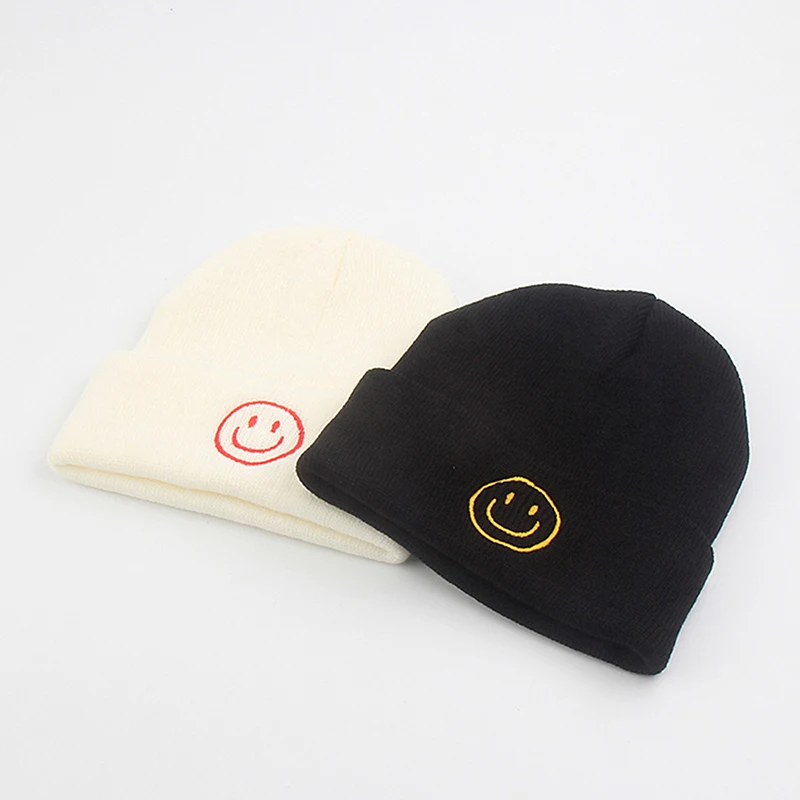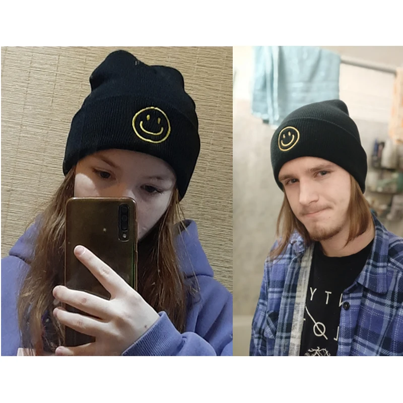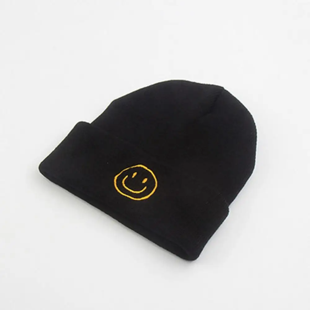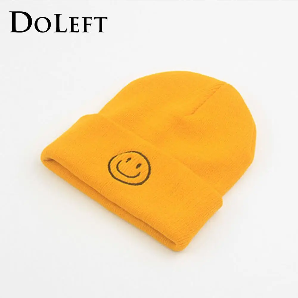 Зимняя шапка женская, женские теплые вязаные шапки в стиле смайлика, мужские уличные мягкие однотонные шапки в стиле хип-хоп Unsiex