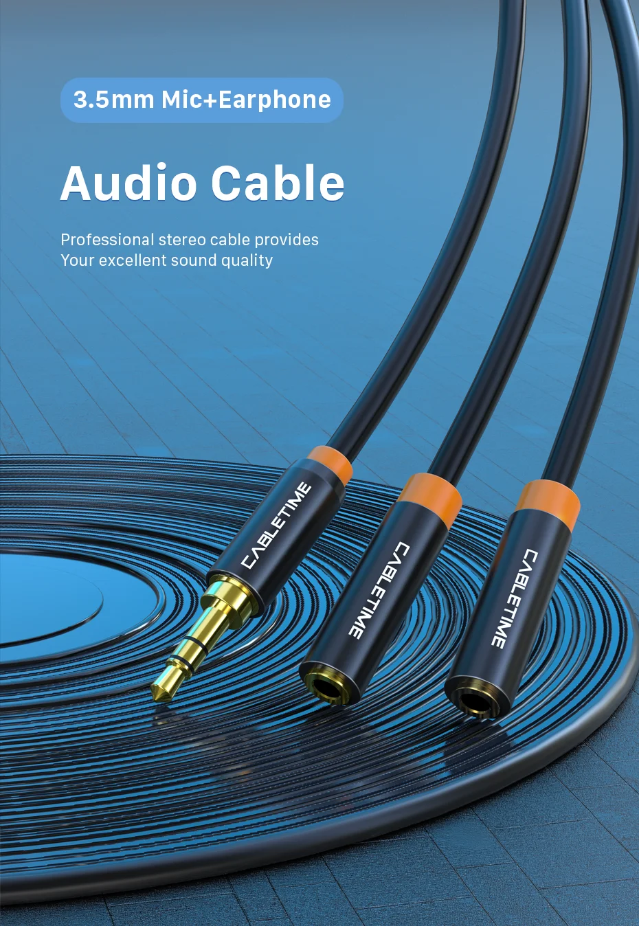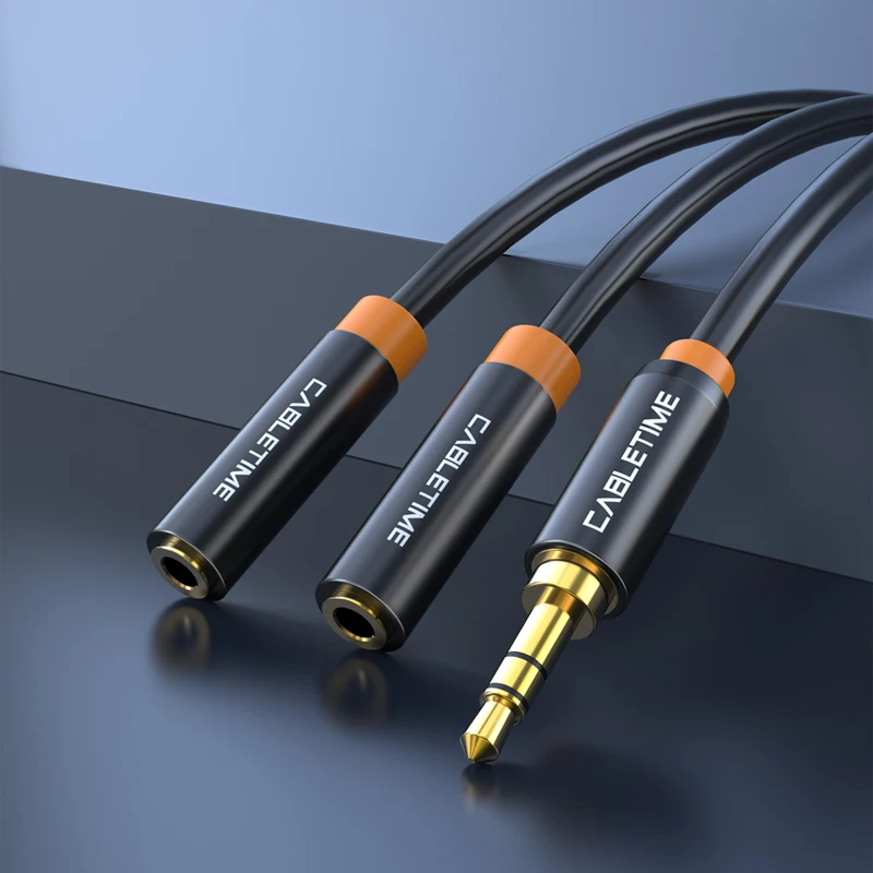 Аудиокабель CABLETIME, разветвитель для наушников, штекер 3,5 мм, 2 разъема 3,5 мм, переходник Aux, кабель для iPhone, Samsung, MP3-плееров C101