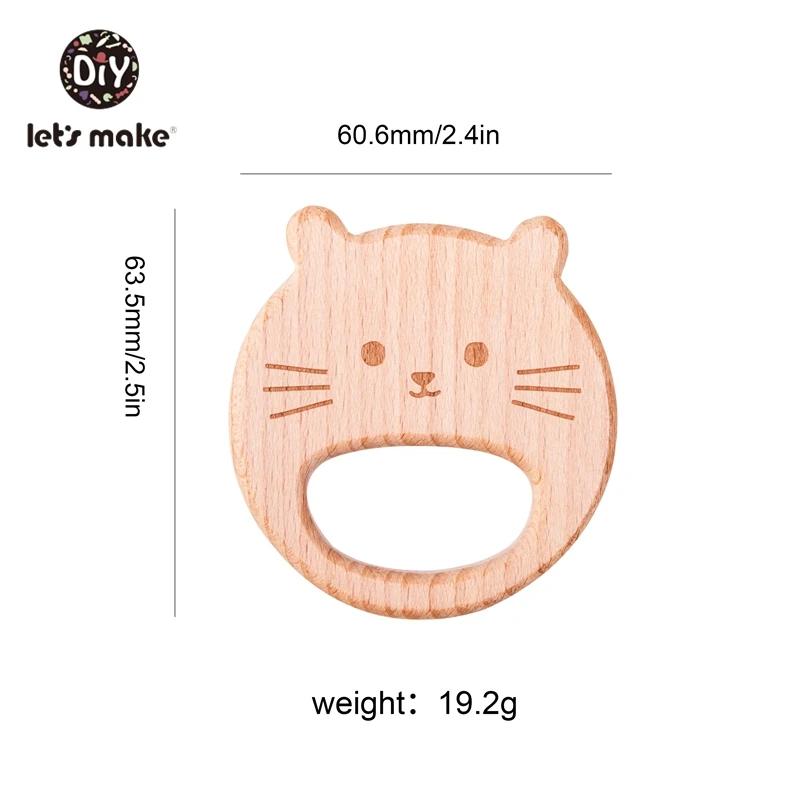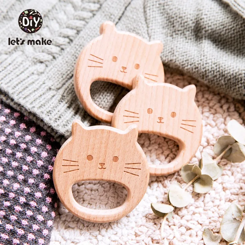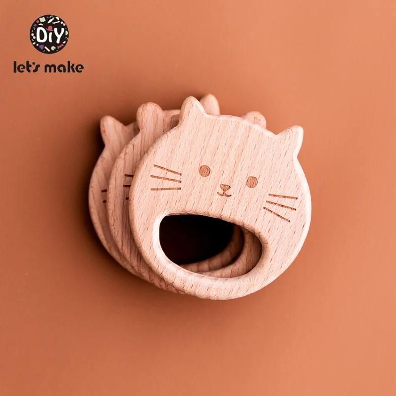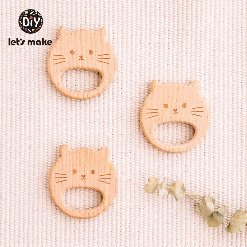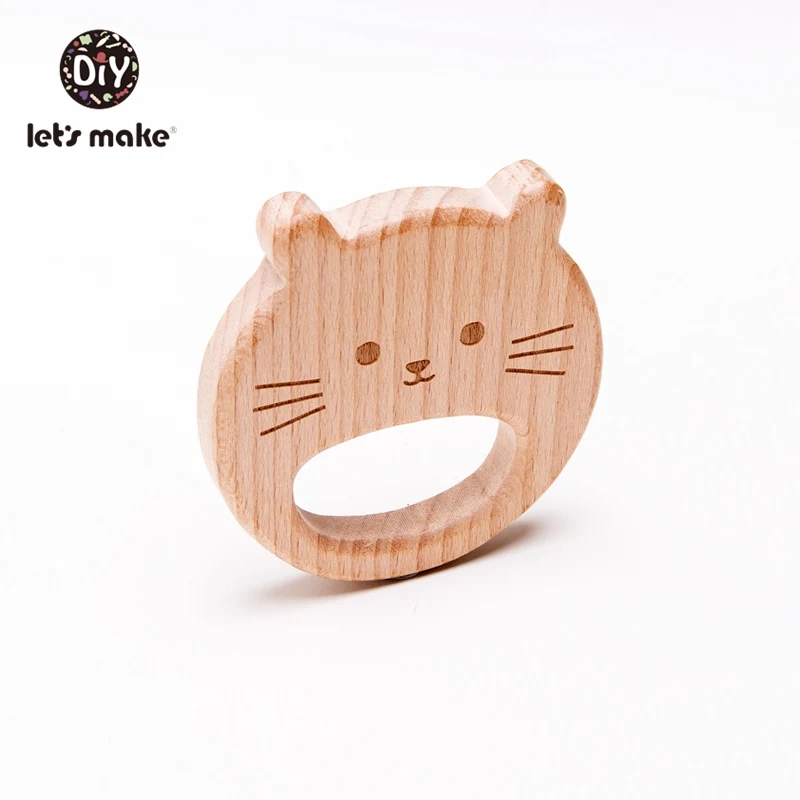 Давайте сделаем 1 шт. деревянные Прорезыватели пищевого класса бука деревянные животные Автомобильный увлажнитель мультяшная кошка Diy пустышка цепь Bpa бесплатно Деревянный Прорезыватель