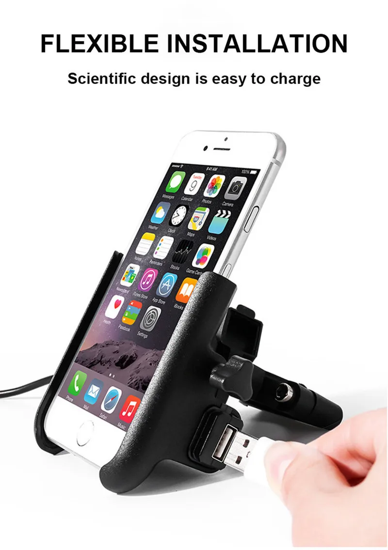 Алюминиевый зарядный мотоцикл зеркало заднего вида мобильный телефон держатель 12-24V Универсальный руль 5V/2A USB зарядное устройство подставка крепление