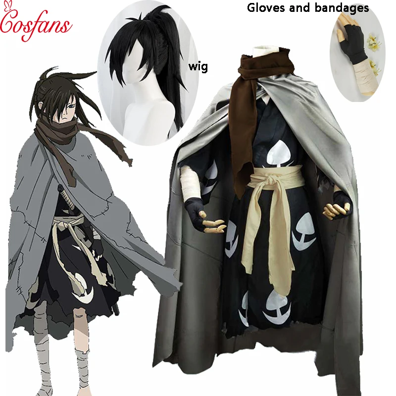 6 шт., японское аниме косплей-костюм Dororo, кимоно Hyakkimaru, мужской косплей-костюм, костюм на Хэллоуин, Мужской плащ, полный комплект и парик