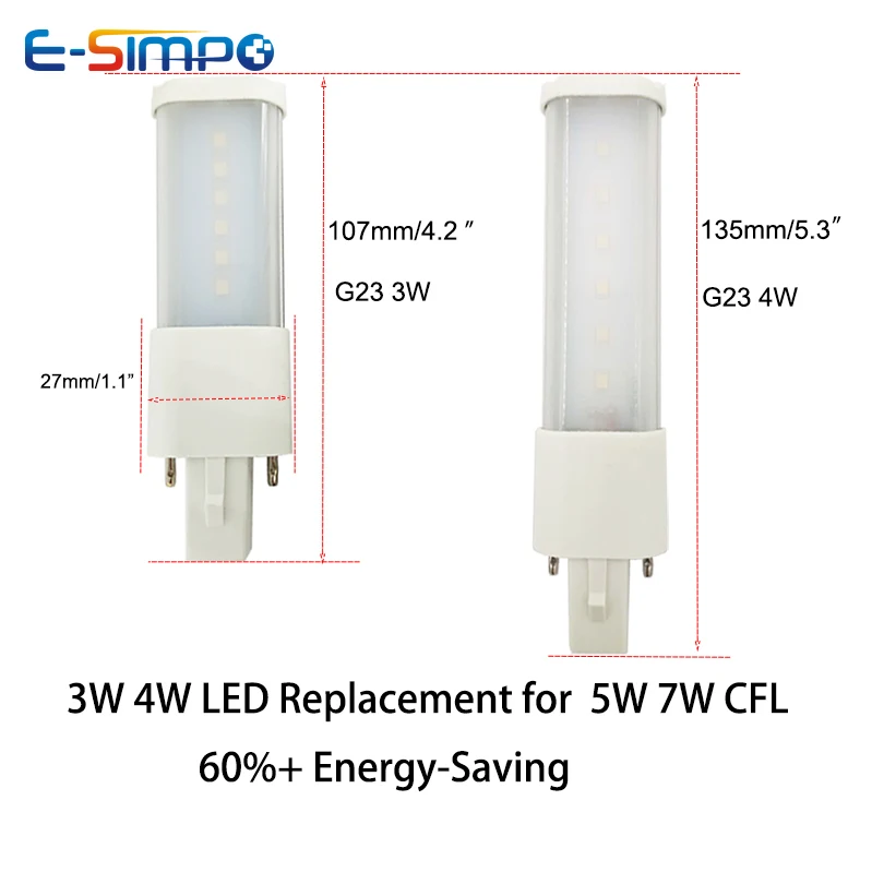 1 шт. G23 светодиодный 345 Вт PL-S CFL светодиодный Замена 110V220V 2Pin G23GX23 4Pin 2G72GX7 подключаемого модуля энергосберегающий светодиодный светильник