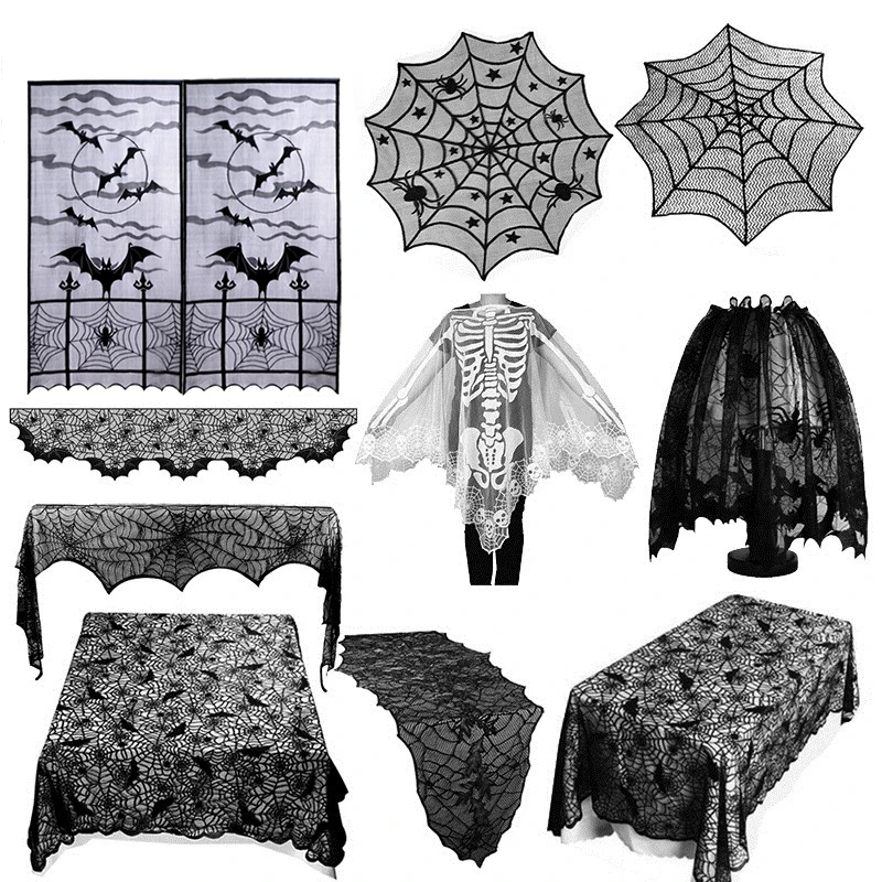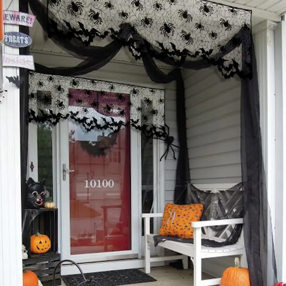 Реквизит для Хэллоуина Черная кружевная Паутина Летучая мышь занавеска скатерть камин мантия для Хэллоуина тема домашвечерние ASD147