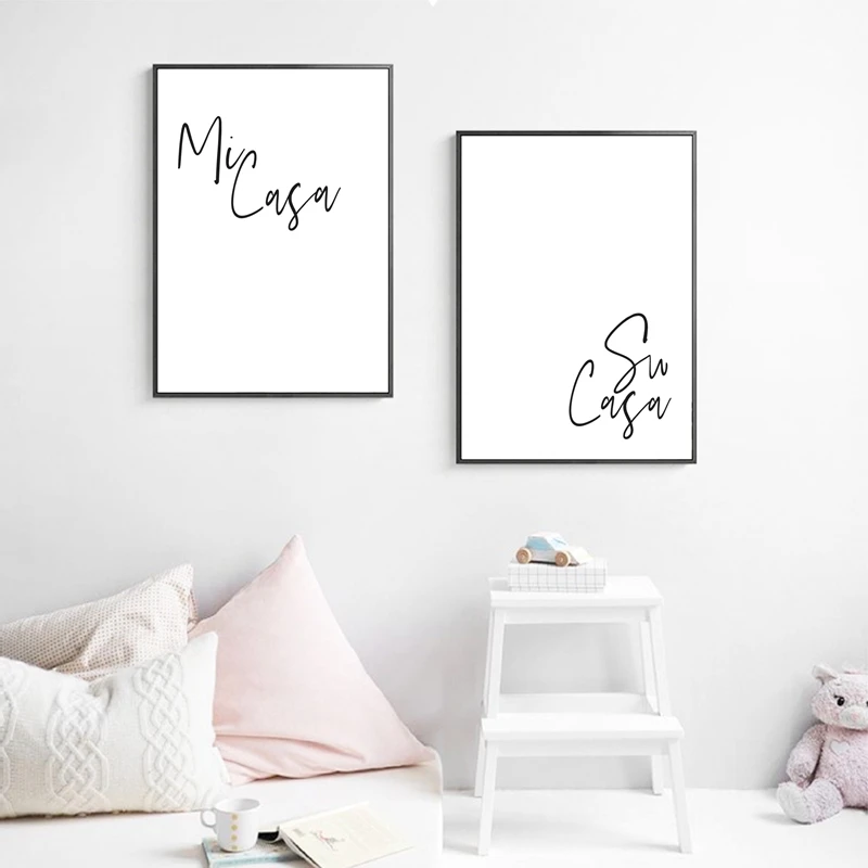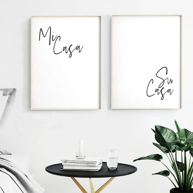 Mi Casa Es Su Casa Настенный декор для гостиной, испанские цитаты, современные плакаты в стиле минимализма, черно-белое украшение для дома