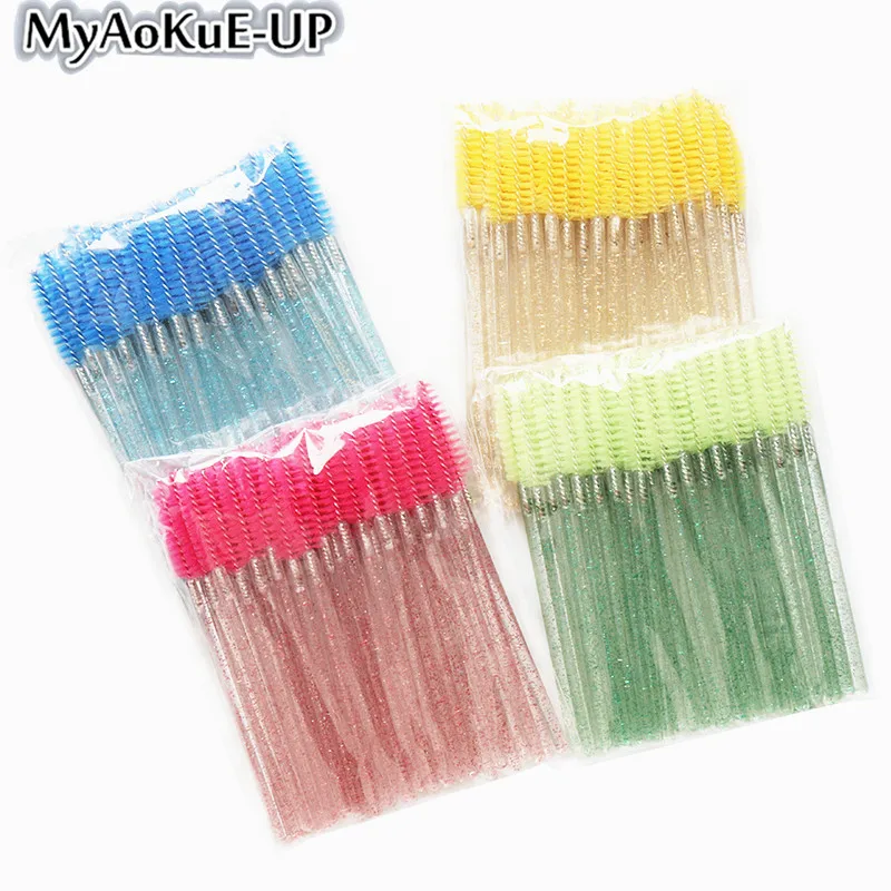 50 шт одноразовые кисти для макияжа косметические ресницы Хрустальная ресница кисти алмазные аппликатор для ресниц палочки с кисточкой для туши инструменты
